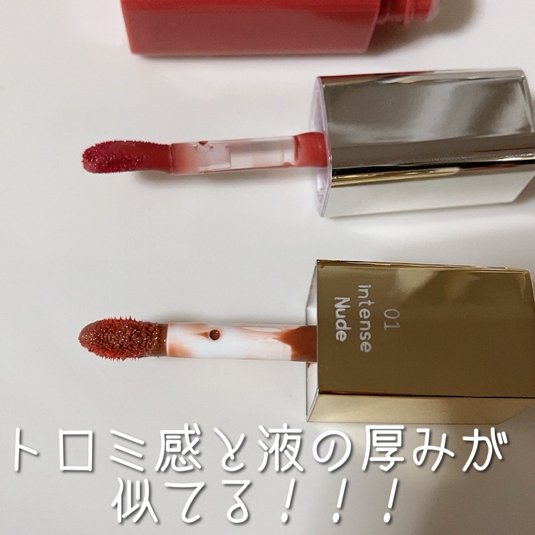 塗ってみてビックリ( ̄∀ ̄) 発色よすぎです✨✨ 若干せっけんの香りもする🧼 発色良すぎてぼかさないと唇がすごいことになるんですけどツヤタイプなのでボカすとツヤが消えちゃうよね… ティッシュオフするとツヤも消えちゃうんだよねぇ… もうちょっと落ち着いた色だといいのかも!!!! 色持ちも想像よりしないかなぁ。一日マスクしてたら普通に落ちてました! 塗り心地はシャネルのインクフュージョンにそっくりです( ^ω^ )