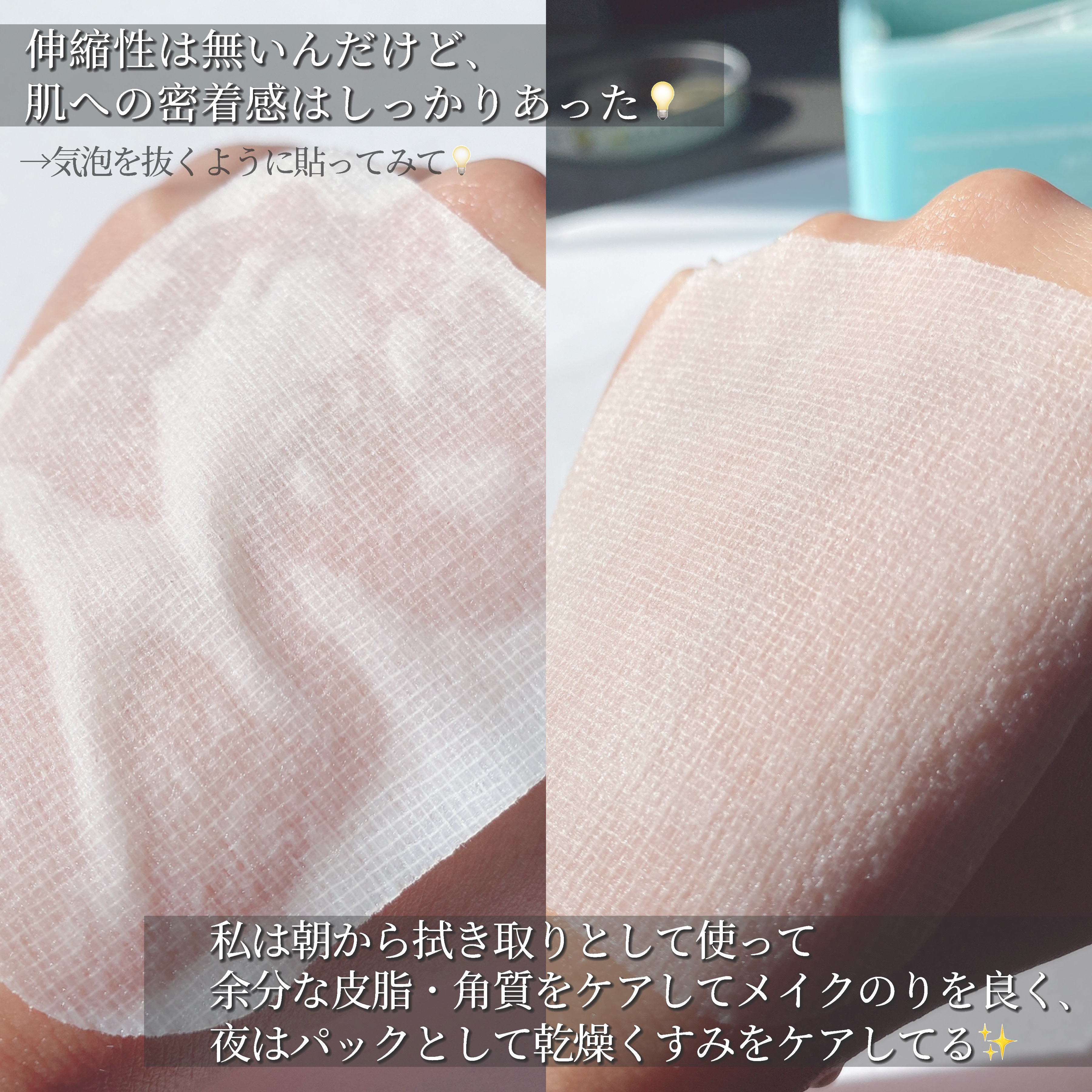 肌荒れ防止のアフターケア‼︎ ツボクサ2回抽出したマデカソサイド配合量2倍🫶 薄いガーゼ素材で密着力もあり スクエア型で使いやすい🙆♀️ 夜よりも朝‼︎ パックとしてもいいけど拭き取りがおすすめ💫
