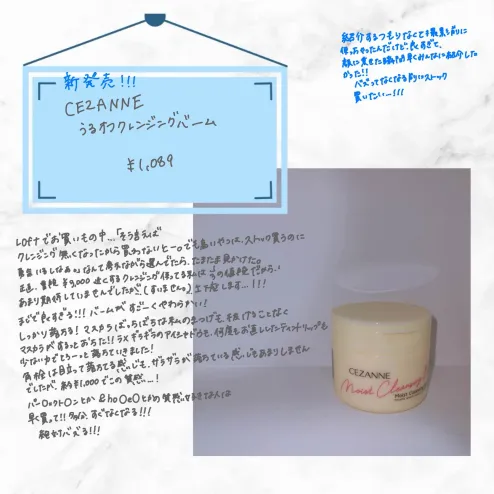 クレンジングはオイル派だったのですが、どうしてもバームに挑戦してみたい…でも合わなかったらお金もったいないな…そんなときに出会ったのが🌟CEZANNEうるオフクレンジングバーム¥1,089初めて店頭で見かけたときクレンジングバームが1000円...