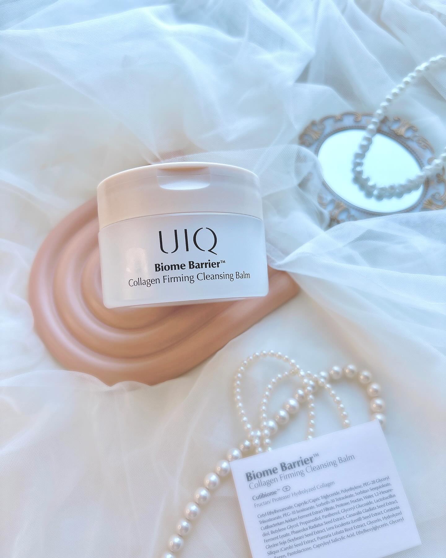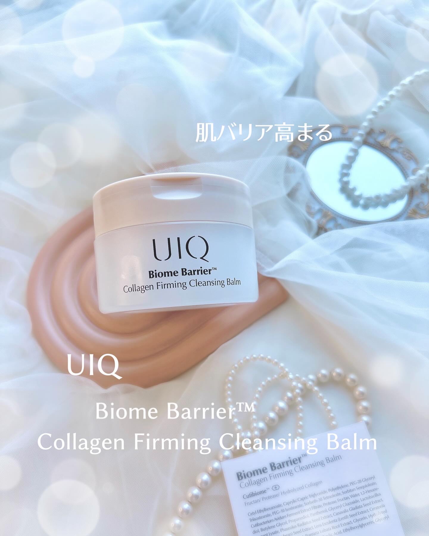 手の温度でスルッととろける UIQ🤍バイオームバリアコラーゲンファーミングクレンジングバーム 柔らかくてなめらかやからお肌に摩擦をほとんど与えずにメイクを落とせるよ! ウォータープルーフメイクも落ちる👍🏻 ブラックヘッド/ホワイトヘッド/角栓ケアもできるから毛穴が気になる人にもおすすめ!