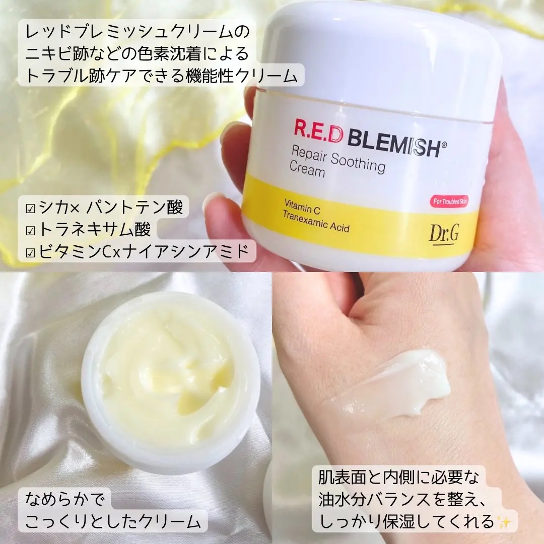 人気のクリームにシミケアVer.が! #レッドブレミッシュリペアスージングクリーム トラネキサム酸配合でトラブル跡や色素沈着、しみケアが期待できるクリームが登場✨ ベタつきなく保湿してくれて、インナードライの私にはぴったりでした🤍