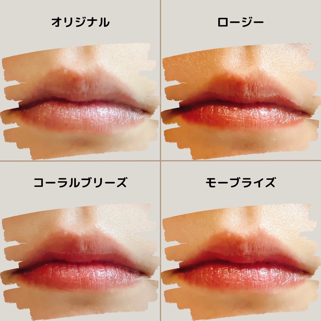 新カラーである2色登場で好きなスタイルのものが選択可能に! チークとしても使える万能アイテム🪄︎︎ 植物性オイル&バター56%以上配合 4時間後の保湿維持率91.17% 荒れた敏感なくちびるにも使用OK 敏感肌刺激テスト完了
