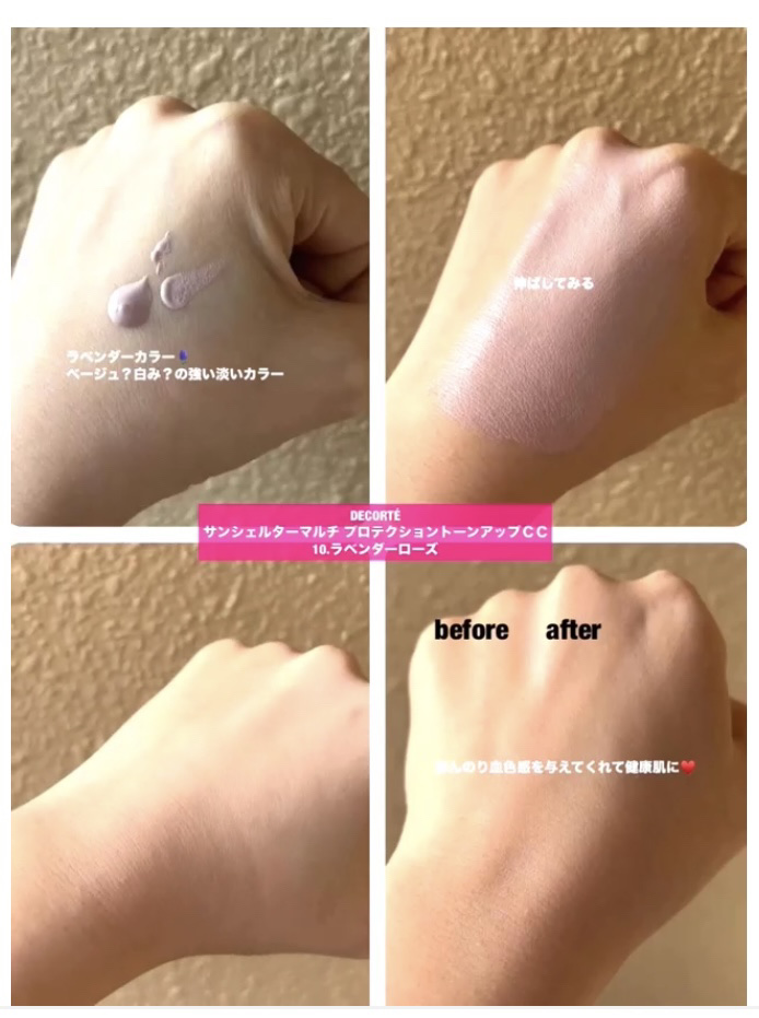 【使った商品】DECORTÉサンシェルター マルチプロテクション トーンアップCC ラベンダーローズ【崩れにくさ】比較的崩れにくい【カバー力】割とある【ツヤorマット】ツヤ【良いところ】トーンアップがかなりある【イマイチなところ】ファンデーシ...