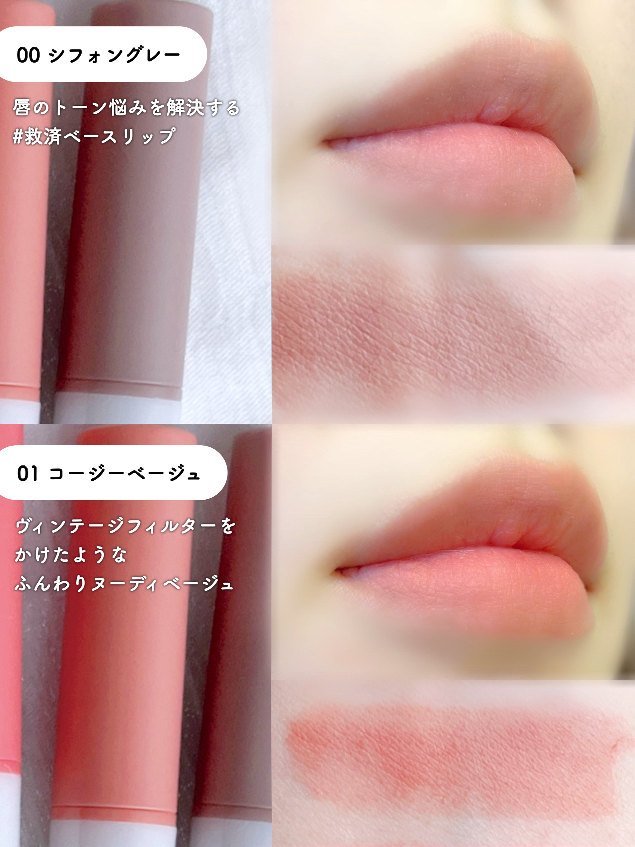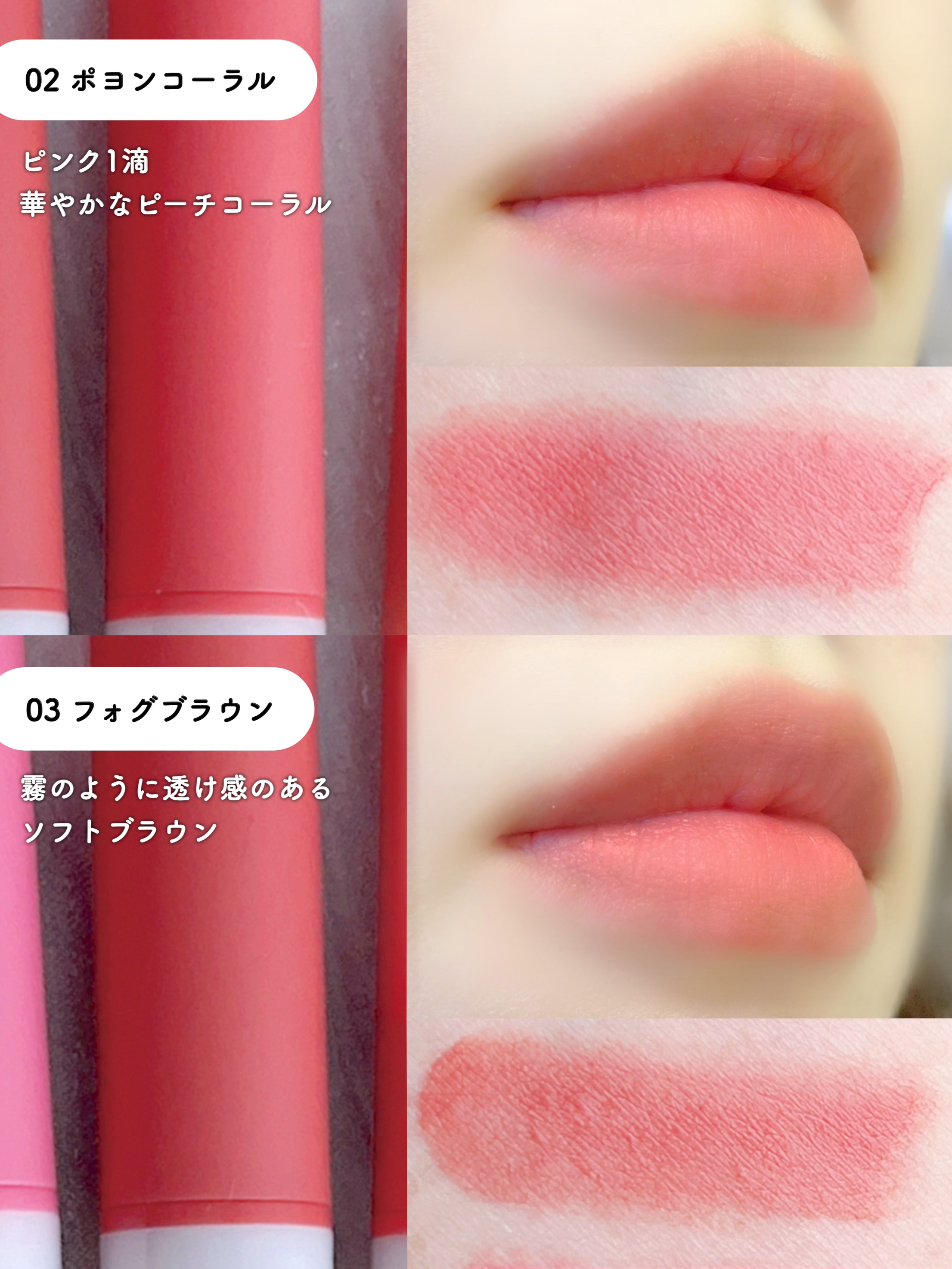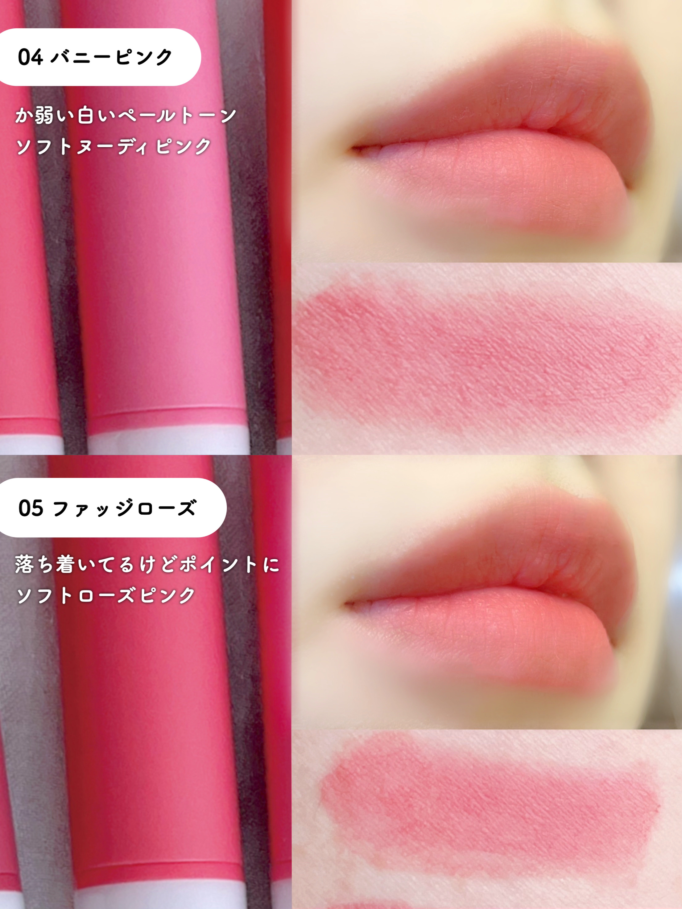 私的に、色持ちの他に'落ち方が綺麗か'もかなり重要視しています🤔 オフィスメイクにも、デートにも、毎日メイクにも使いやすいラインナップです🫰🏻 ブルベのイエベ寄せメイクにも💯