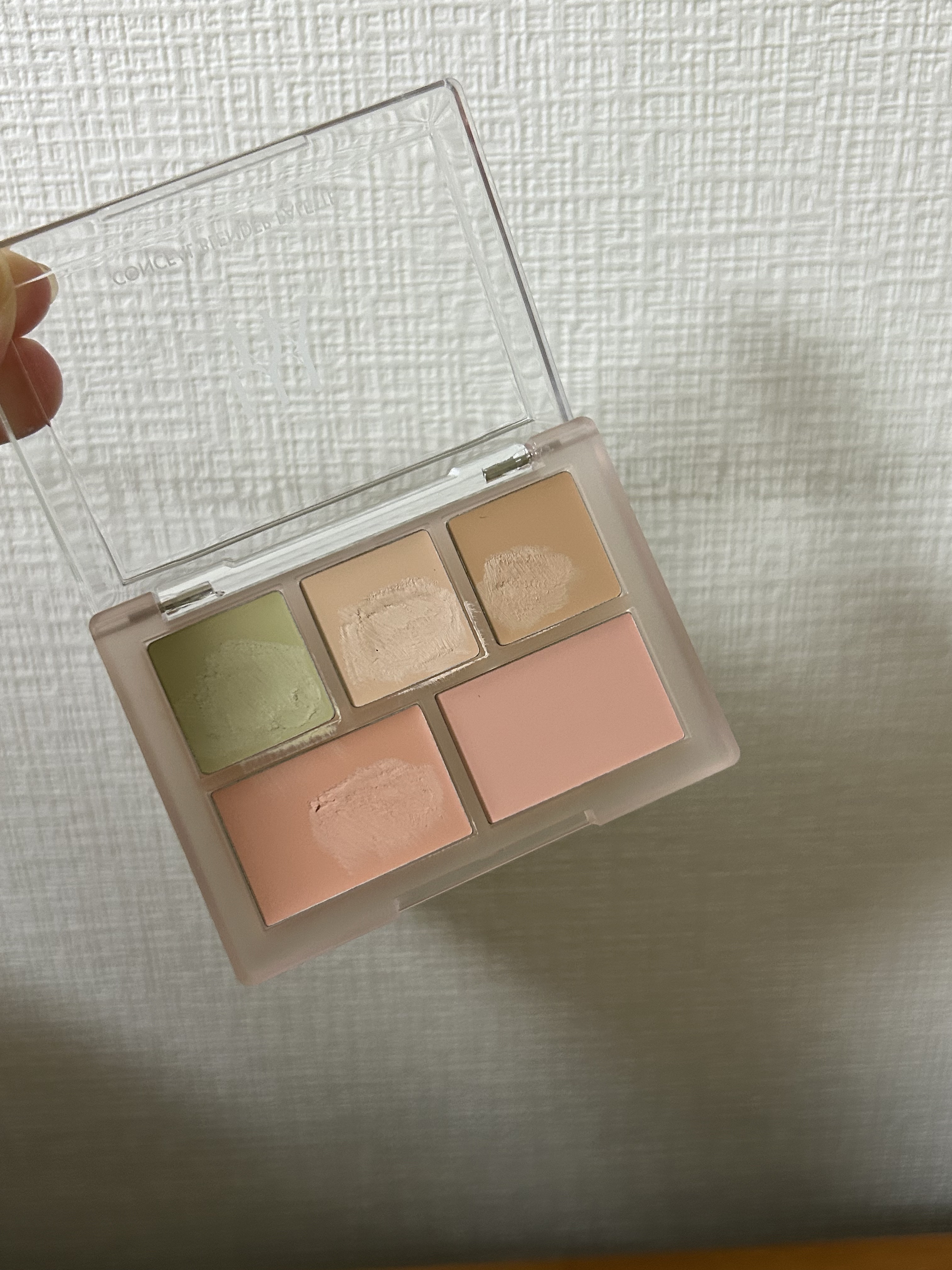 肌色や目的に応じて自在に色をブレンドできる、5色入りコンシーラーパレット。 広範囲に塗る色は伸びの良いやわらかテクスチャー、カバー目的のカラーは高密着で固めのテクスチャーと計算しつくされた設計で、これひとつでカバーからカラー補正まで幅広く対応します。 01 クリアカバーは、イエベ、ニュートラル向きみたいです!グリーンの部分が、鼻下の赤みなどに使いやすいかなと思いました💚