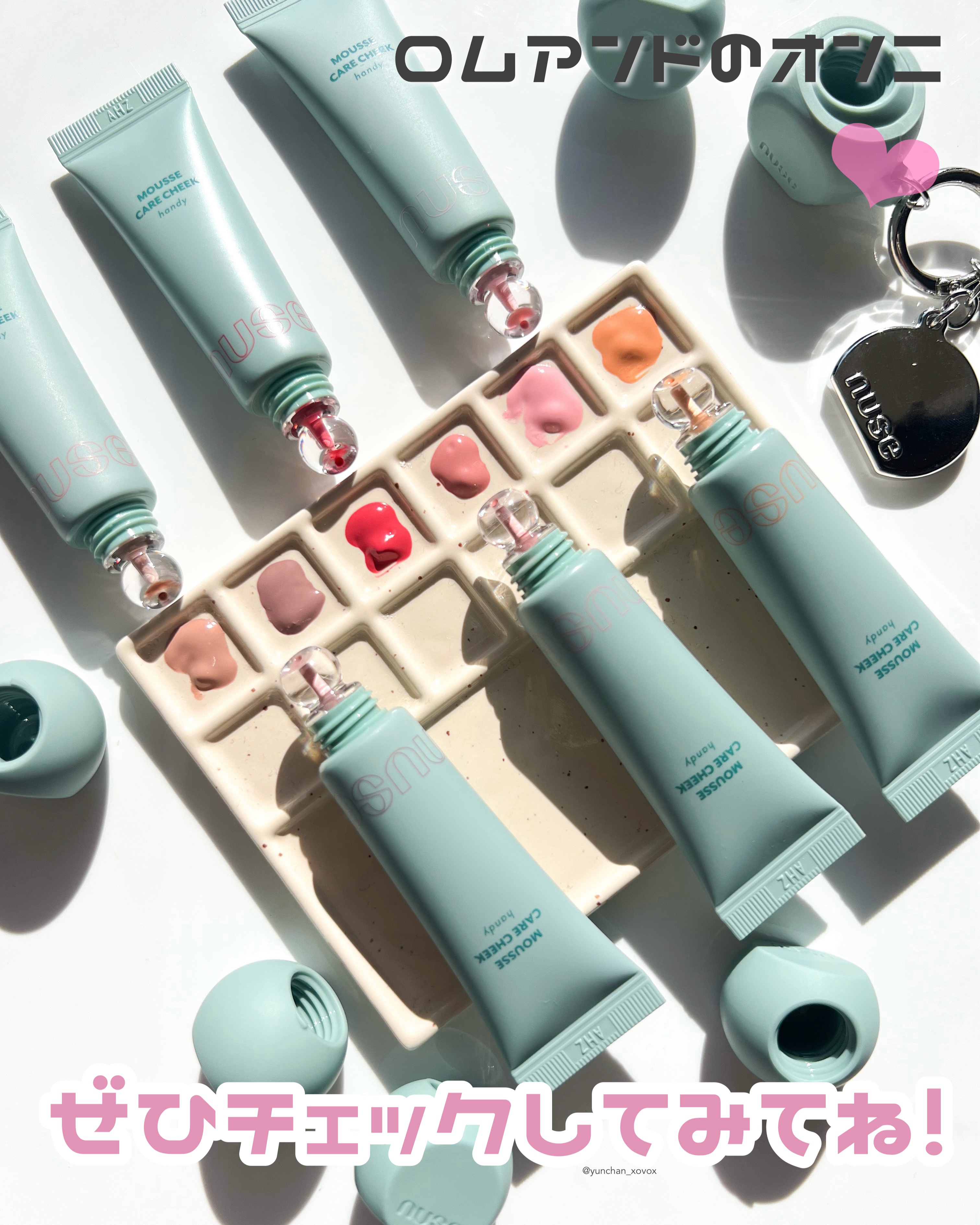 毛穴をふんわりカバーし、角質をケアしてなめらかに 魔法のようなふんわりハンディムースケアチーク( / ̫ т ) ♡ ヌーズは個性的なカラー表現と健康的なスキンケアが同時に叶う 新しいカラーケアカテゴリを提案。 明るい肌から暗い肌まで全ての肌トーンの血色を再現したカラーバリエーションで血色をカスタムできる明度チークもあるので