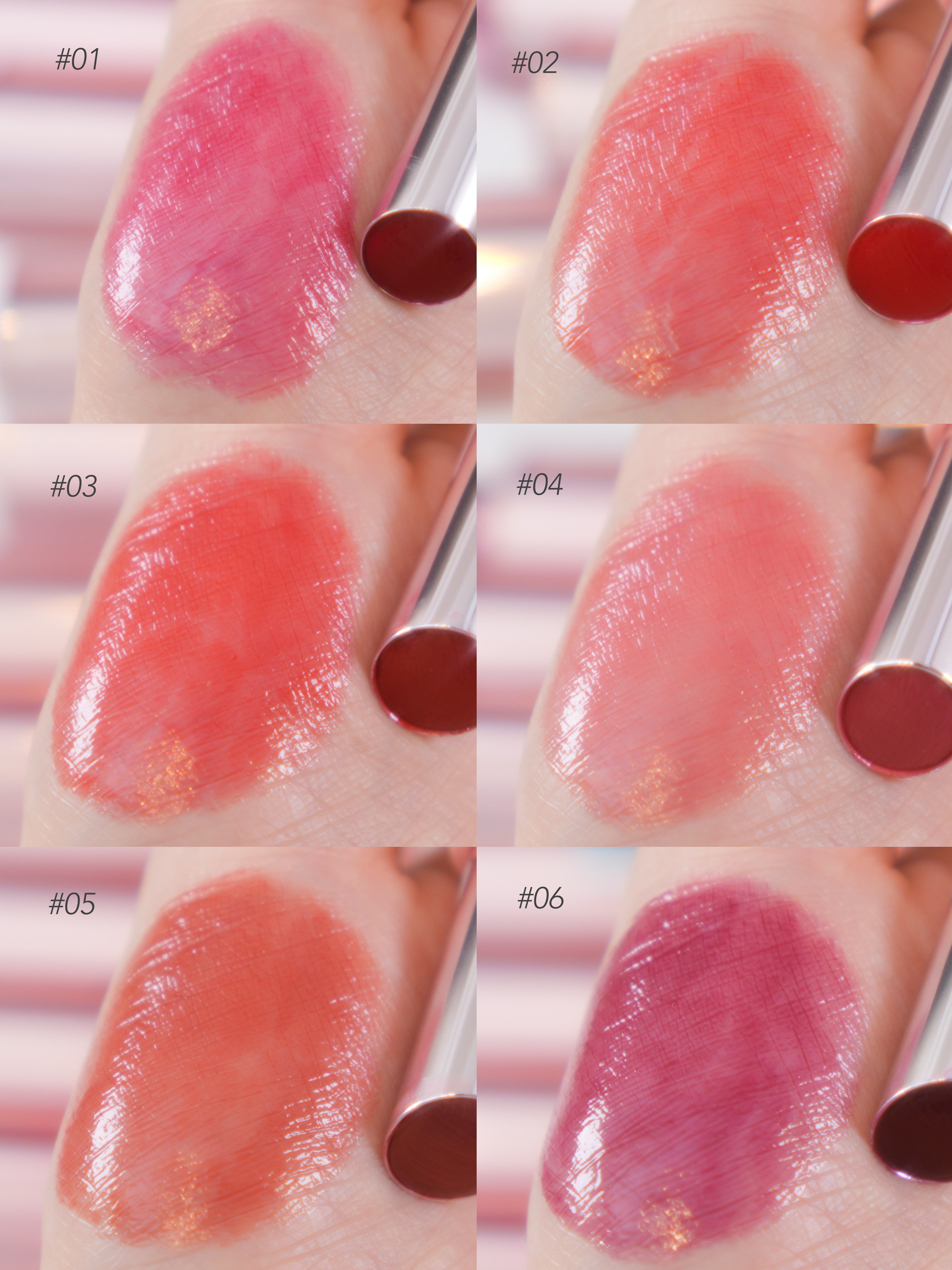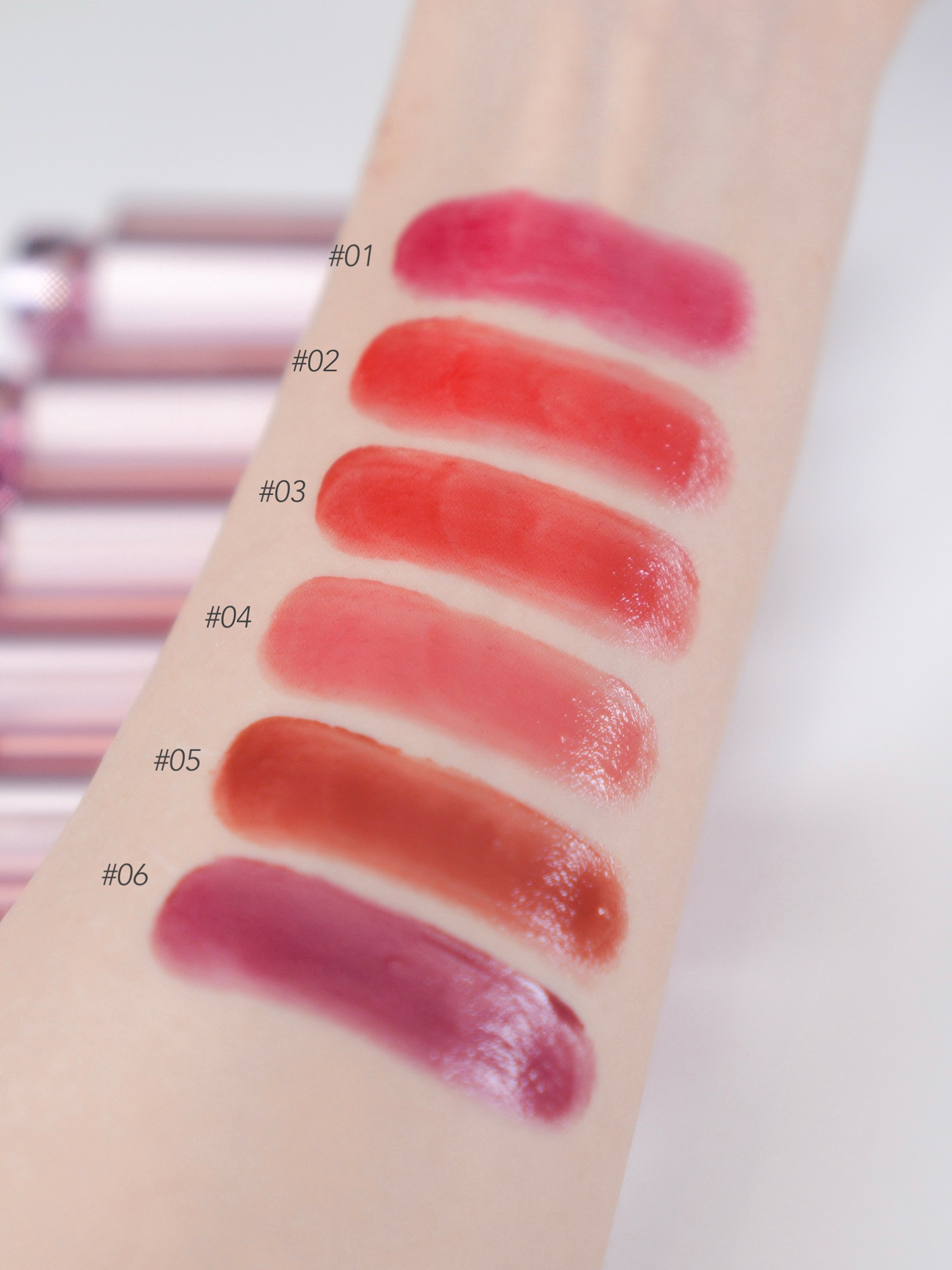 高屈折オイル配合!どの角度からでもツヤツヤに ぷるっぷるのつやつやリップになれるグロス🥺 02,06は色の系統がかなり似ているので、 深みが好きなら06 淡いカラーが好きなら02 で選ぶのがいいと思います꒰っ˙꒳˙c꒱♡