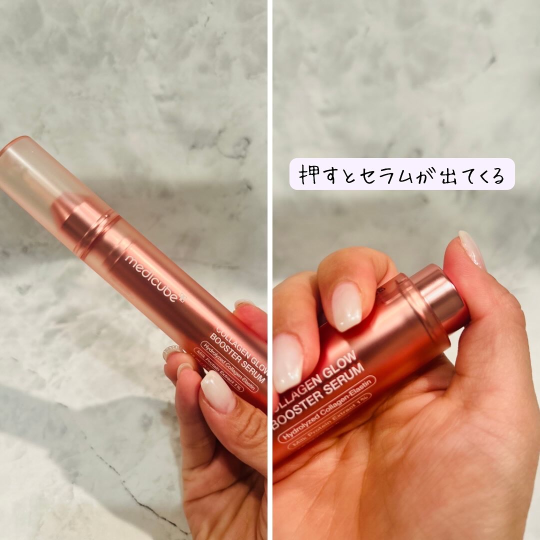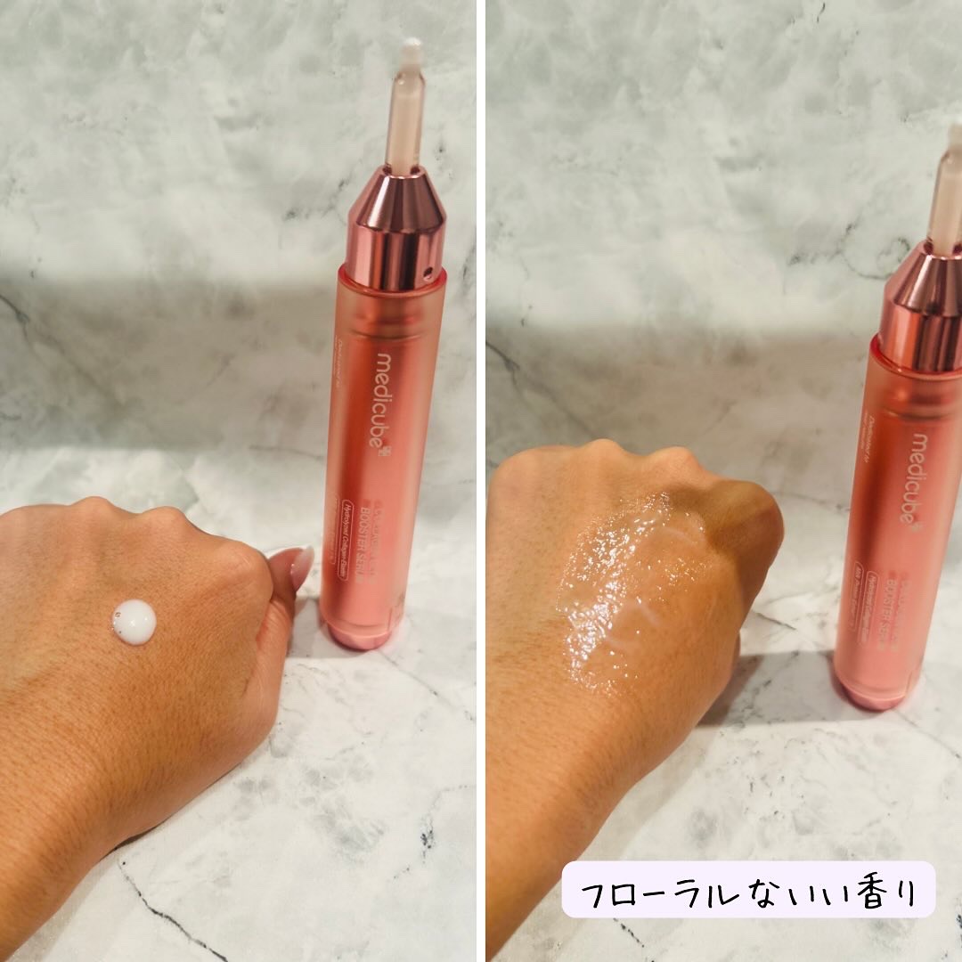 こちらの「コラーゲンブースターセラム」は、通称「注射器セラム」と言われる通り、容器の底を押して、まるで注射器のように取り出すユニークな美容液です。 話題の成分「PDRN」をが配合されていて、より強力なコラーゲンを生成効果が期待できるとのこと。 保湿力がとても高く、乾燥が気になってきた今の時期でも、一度塗れば長時間乾燥を感じませんでした。