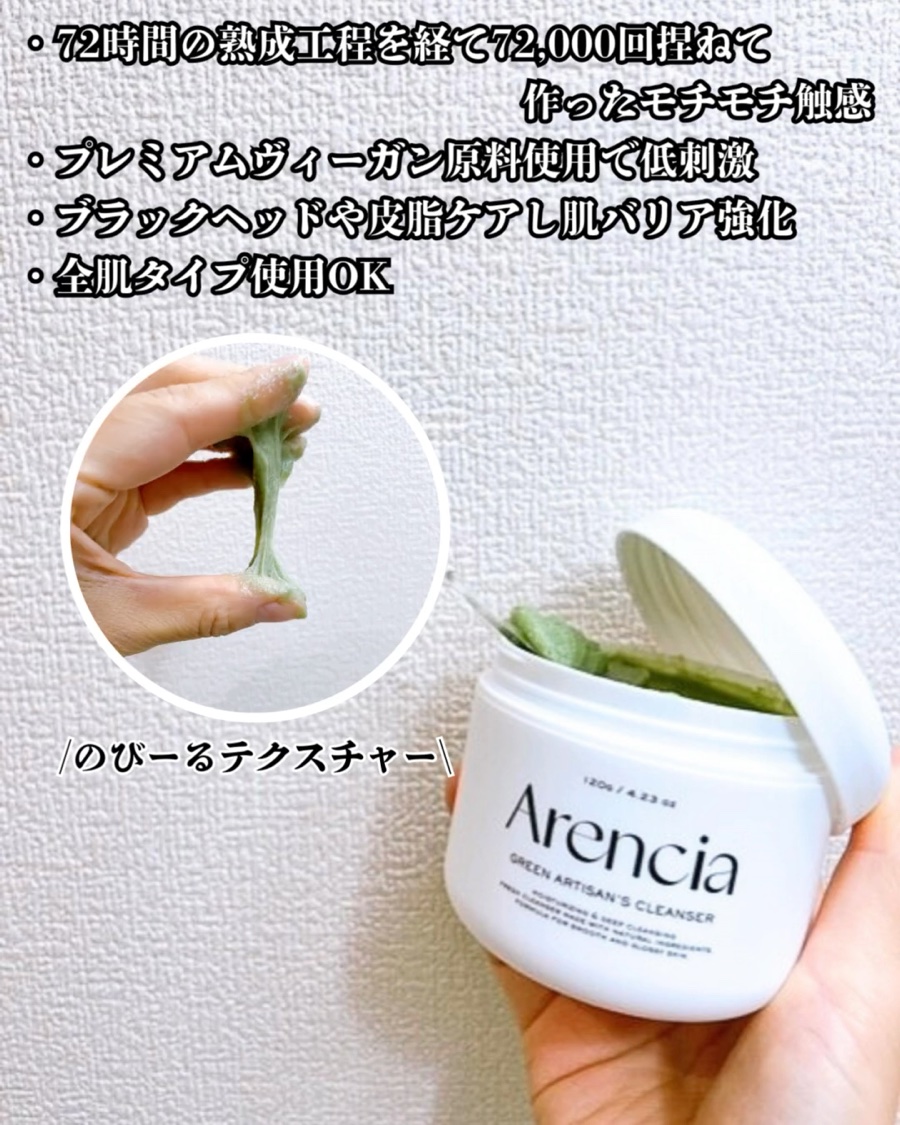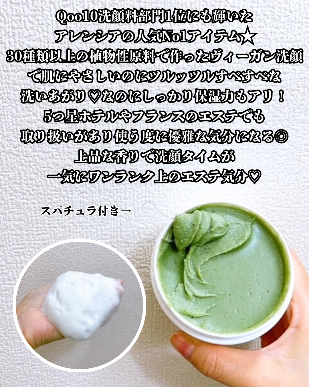 Arenciaの一位洗顔‼︎ Qoo10での洗顔料部門一位🥇 びよーんっと伸びるもちもちの洗顔で泡立てるとモチモチの泡ができあがる✨ このグリーンのもちソープは全ての肌タイプの人におすすめらしく皮脂の調整をサポートしてくれるそう✨