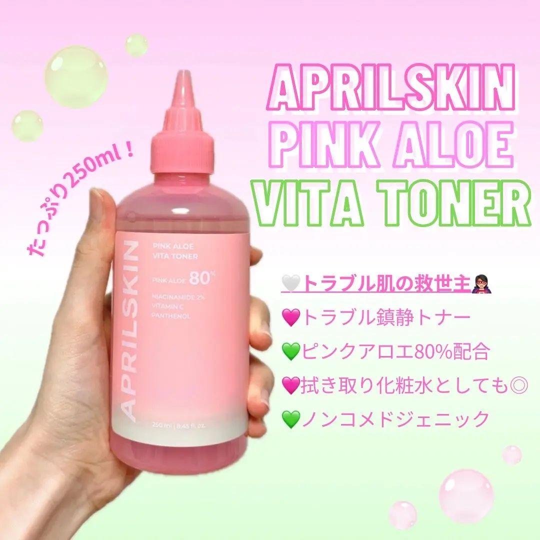 ピンクでかわいいトナー♡ とんがりキャップが付属されていて、付け替えて使うよ𓂃◌𓂂 このトナーはそんなピンクアロエを80%も配合している🌿𓂃◌𓈒𓐍 トナーなのにまるでエッセンス級⟡.· トラブル肌・敏感肌におすすめなので夏の日焼けしたお肌のクーリングにじゃぶじゃぶ使いたい!