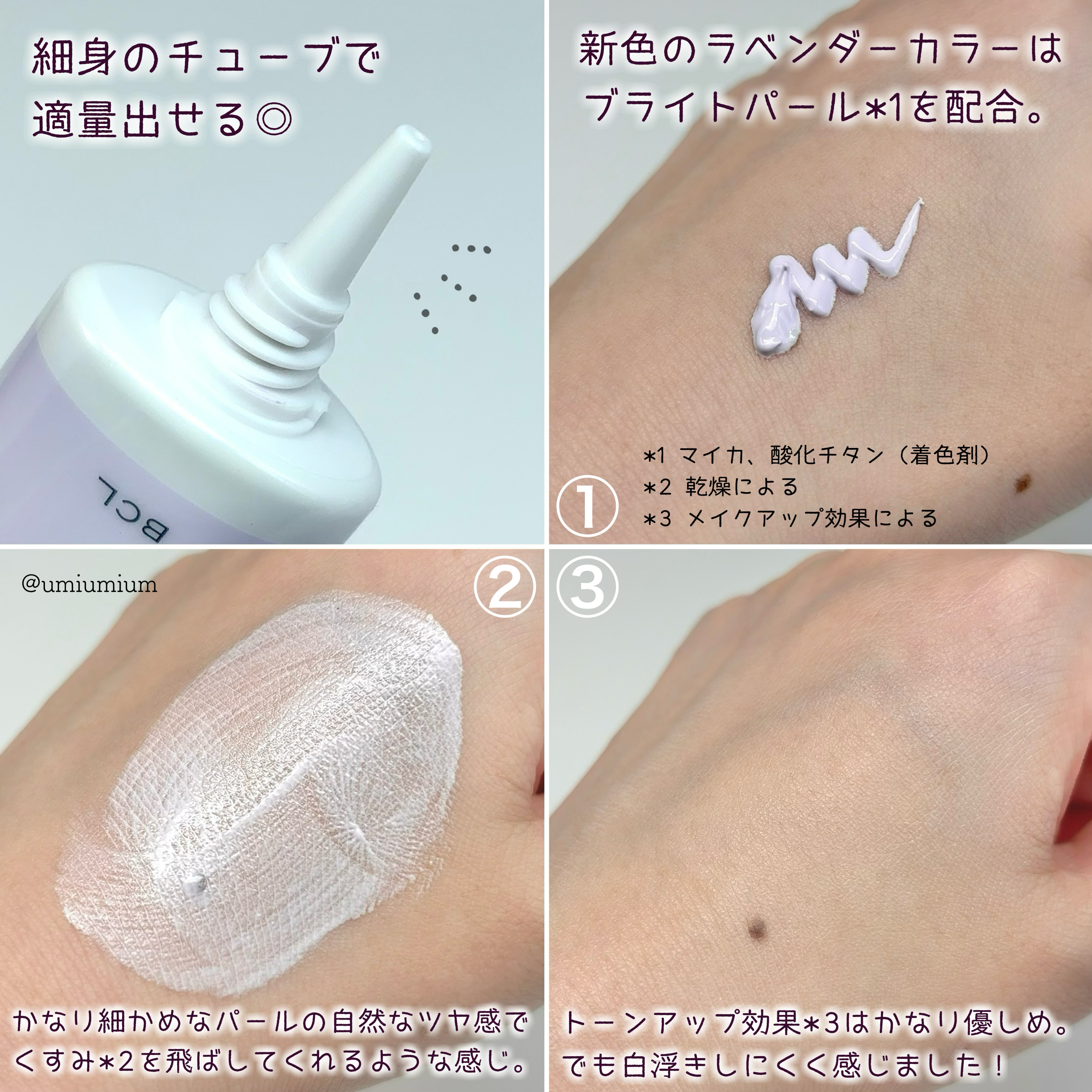 - もう乾燥したくない! ブライトパール配合のラベンダーカラーで透明感*1 アップ。 高保湿・高機能なベースメイク。 ●乾燥崩れ・くすみをカバーしながら、長時間しっとり 【しっとり保湿】 ワセリン・ナイアシンアミド・アミノ酸*2・セラミド*3・ビルベリー葉エキス(保湿) 【透明感*1 アップ】 ブライトパール*4 ●これ1つでOK!オールインワン効果 化粧品+美容液+乳液+クリーム+UVカット+化粧下地 ●SPF45、PA+++ ●やさしい使い心地とフリー設計 石けんオフ・石油系界面活性剤不使用・パラベン・アルコール・合成香料フリー ●環境因子からお肌を守る 花粉・ほこり・PM2.5・紫外線・ブルーライト *1 メイク効果による *2 イソロイシン、ロイシン、フェニルアラニン、バリン、ヒスチジンHCI *3 セラミドAP、セラミドEOP、セラミドNG、セラミドNP(全て保湿) *4 マイカ、酸化チタン(着色剤)