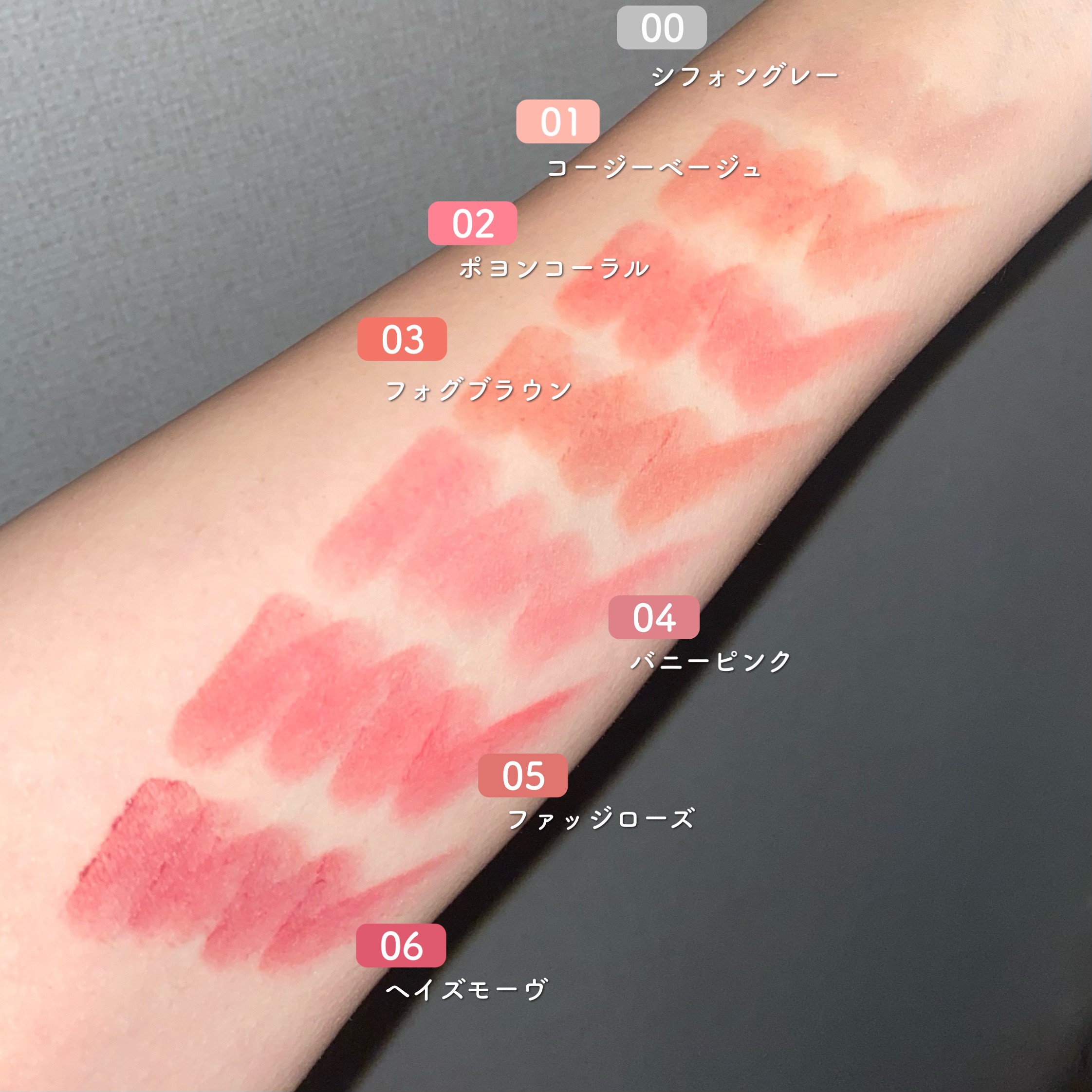 黄味にも青みにも寄らないニュートラルカラーなので どんなアイメイクも合わせやすい◎ マスカラは #踊るさる さん買いした D-UPパーフェクトエクステンション マスカラ for カール チェリーブラウン まつ毛が抜けやすい私にとって お湯落ちなのもとっても嬉しいポイントで 一発で私の毎日メイク1軍マスカラに◎ リップの優しい印象を損なわないために 眉を明るめにしたくて選んだのは Visée リシェ カラーリングアイブロウマスカラ アイブロウパウダー ピンクブラウン 合わせたチークは キャンメイク パウダーチークス PW44 メロウピーチ 今回はデイリーメイクをテーマにしているので リアルにお仕事メイクで最近ずっと使ってる ウルミナプラス 生つや肌おしろい乳液 ナチュラルベージュ