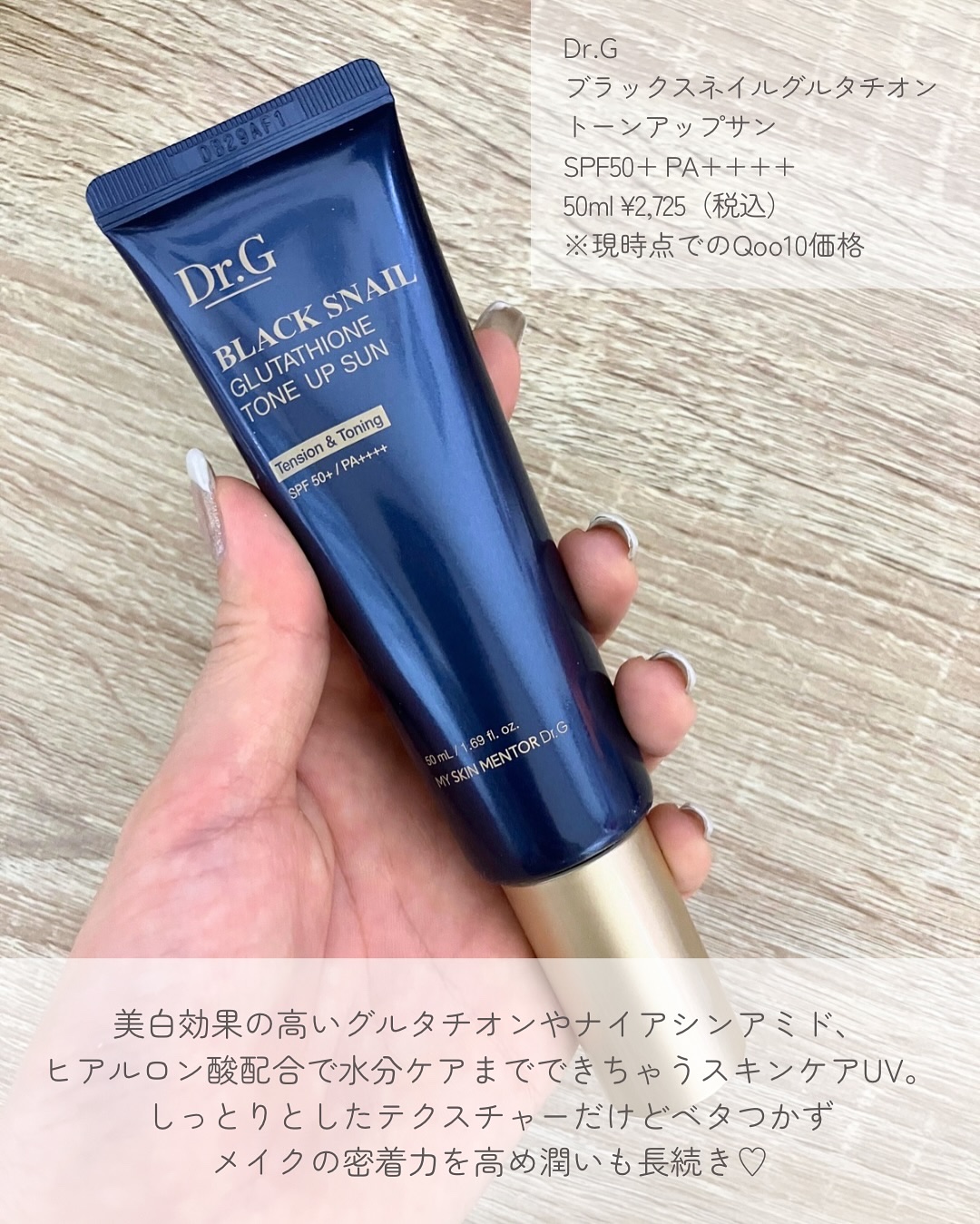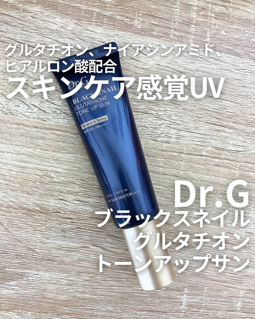 Dr.G独自成分ブラックスネイルにグルタチオン、ナイアシンアミドを配合の化粧下地。 伸びのいいクリームでみずみずしい塗り心地でほんのりトーンアップもするよ! SPF50+PA++++