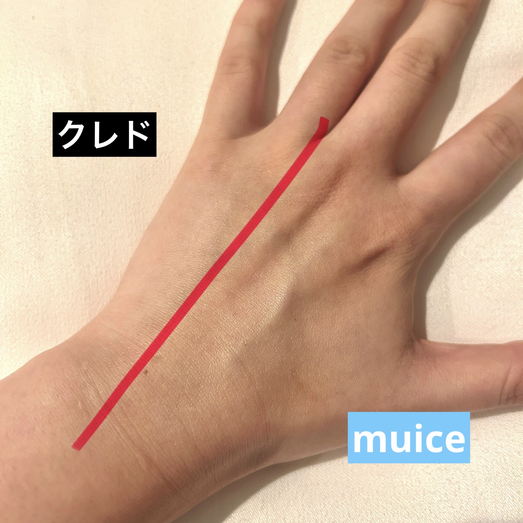 伸ばす前はしっとりの質感・伸ばすと白くなる・少量で伸びが良く肌馴染みが良い・馴染んだ後はサラサラの質感・毛穴まできちんと下地が入り込む(粒子が細かい気がする) 馴染みの良さはクレドと変わらず・馴染んだあともしっとりの質感・クレドと比較して光沢がある 数時間つけた感触はクレドとの違いはほぼわからないレベル(クレドの方が持ちは良い、崩れ方が綺麗)