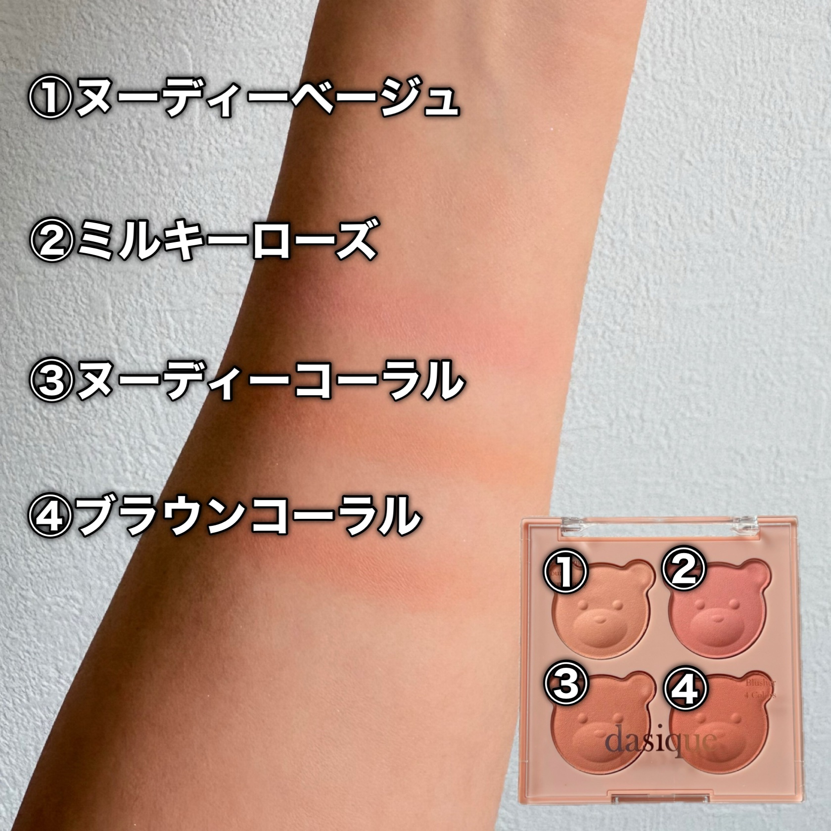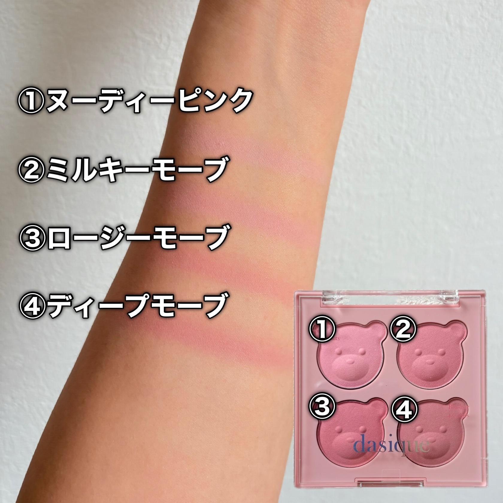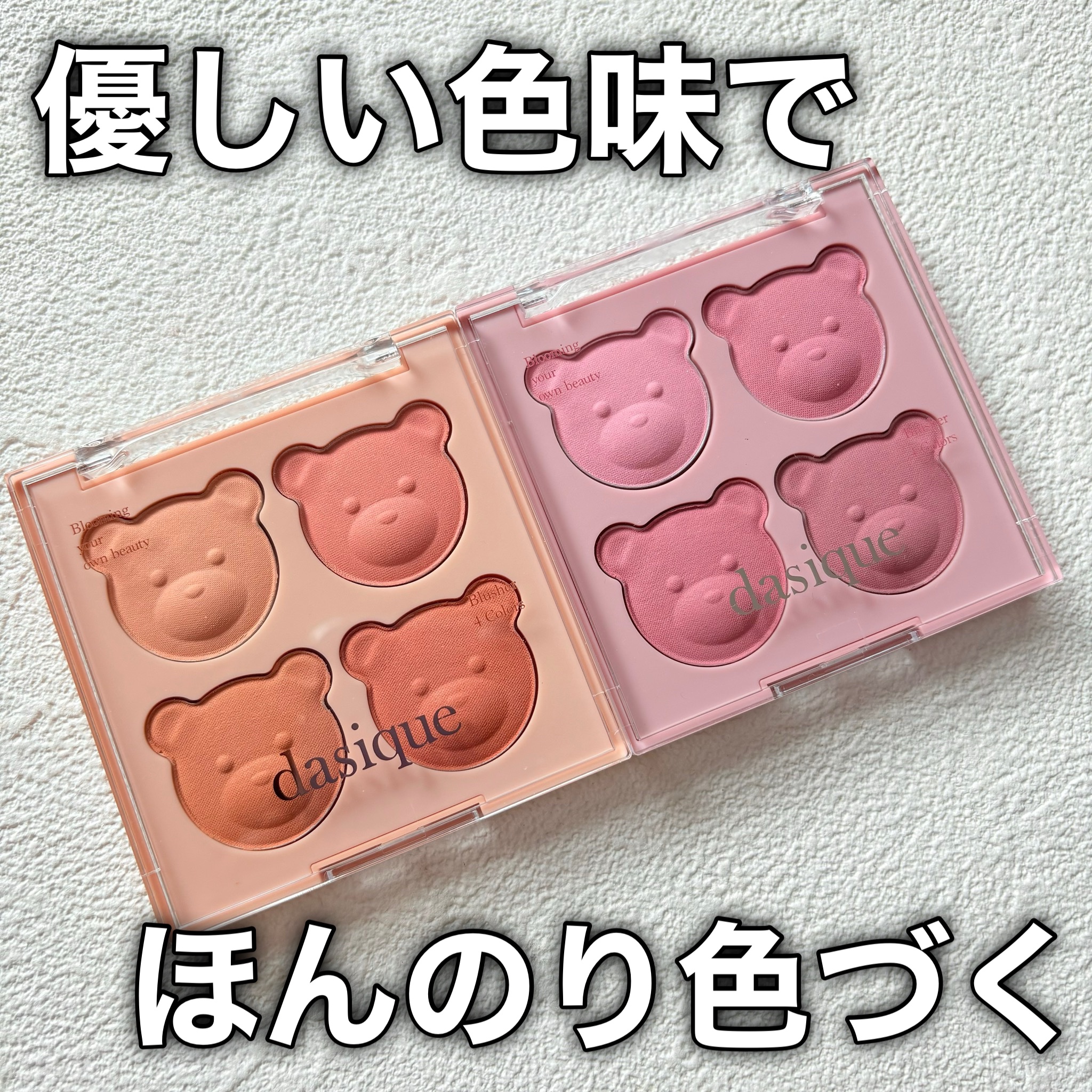 ふんわりクマのぬいぐるみのムードとソフトなカラーでほのかな可愛らしい活気を与える しっとりとしたオイルでコーティングされたパウダーがなめらかでしっとりした肌に仕上げます モーブカラー多めのブルベ向けチーク🧸 しっかり発色だけど透明感がありふんわりしたナチュラルな印象に