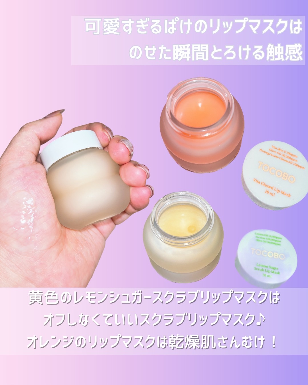 リップケア難民さんには是非とも一度は試してみて欲しい TOCOBOのリップマスク🫶 ねっとりとした濃密なテクスチャーで少量でもしっとり潤うのでコスパ最高!> 📣 ジューシーベリープランピングリップオイルに日本限定色2色が登場します👏🩵