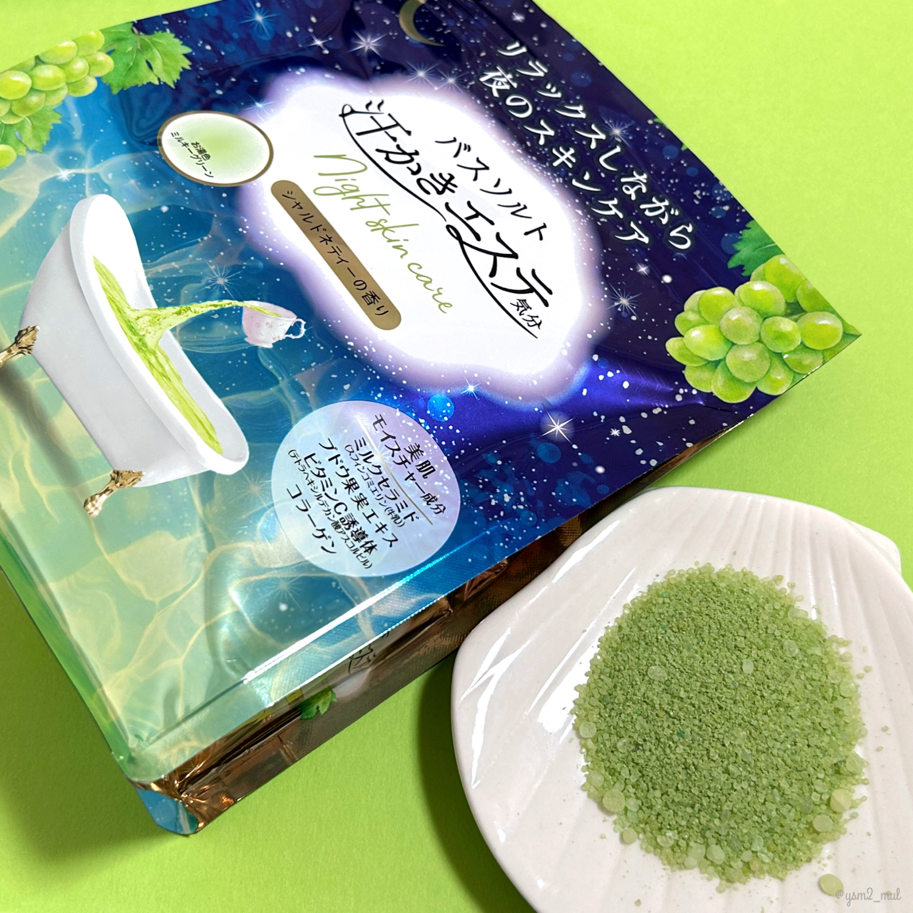スギ薬局限定!シャルドネティーの香りはミルキーな白濁みどりの湯色。上品で爽やかな香りです。フルーティーでいい香り💚 汗かきエステ気分といえば塩!からだを温めながら瀬戸内産岩塩、死海塩が肌をひきしめてくれる。 お肌に嬉しい美肌モイスチャー成分配合。心身ともにリラックスちょっぴり贅沢気分なバスタイムに🛁