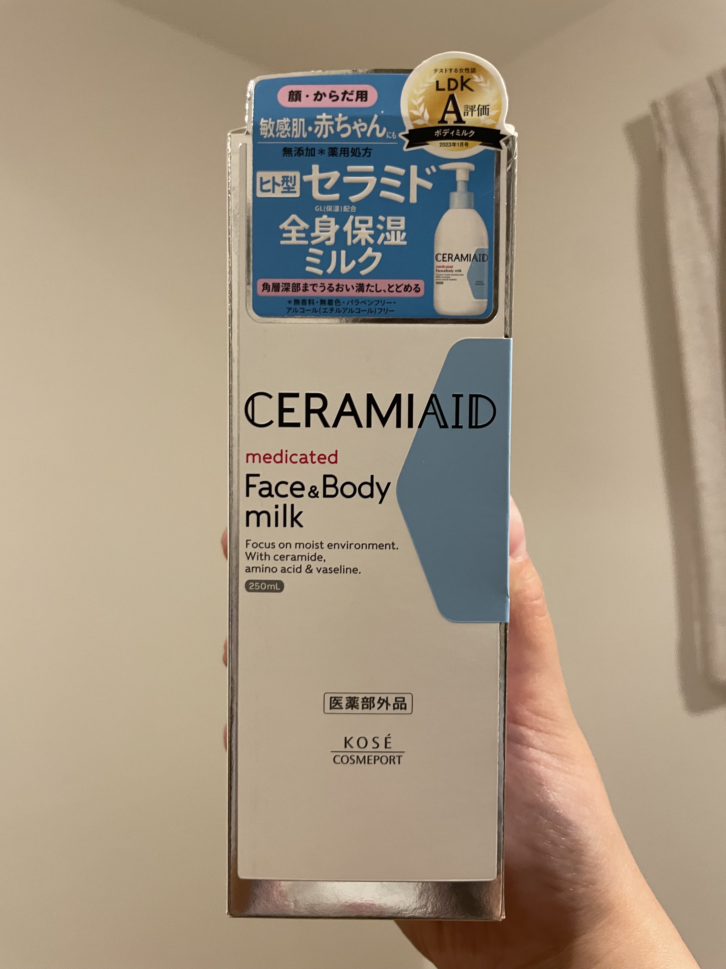 セラミドエイド 薬用スキンミルクは、人が作り出すセラミドと同じ構造をしたヒト型セラミドが肌のバリア機能を補ってくれるボディミルク♪ 無添加の医薬部外品だから赤ちゃんでも使えるくらいやさしい使用感なんだよ👶🤍 ぬれた肌にも使えるからお風呂上がりにささっと塗れちゃうところもお気に入り☺️