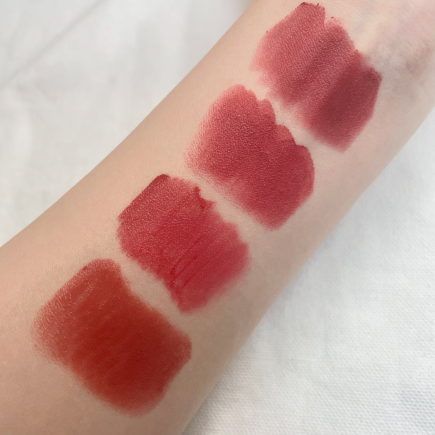 100ドリームズ 使いやすいヌードピンクです。これが1番普段使いしやすいと思います。指でポンポンするとシルバーのラメがキラキラです✨ 353リエゾン ライトローズウッド。この色が1番ラメ感が強い気がしました。実物は思ったよりピンクのラメがキラキラですが、他にこのようなリップを見たことがないので即決でした! リップ下地などは塗らずに、直でこちらを塗った方が色持ちが良いとBAさんが言っておりました!指でポンポンするとラメがキラキラしてくるのでほんとに可愛いです!