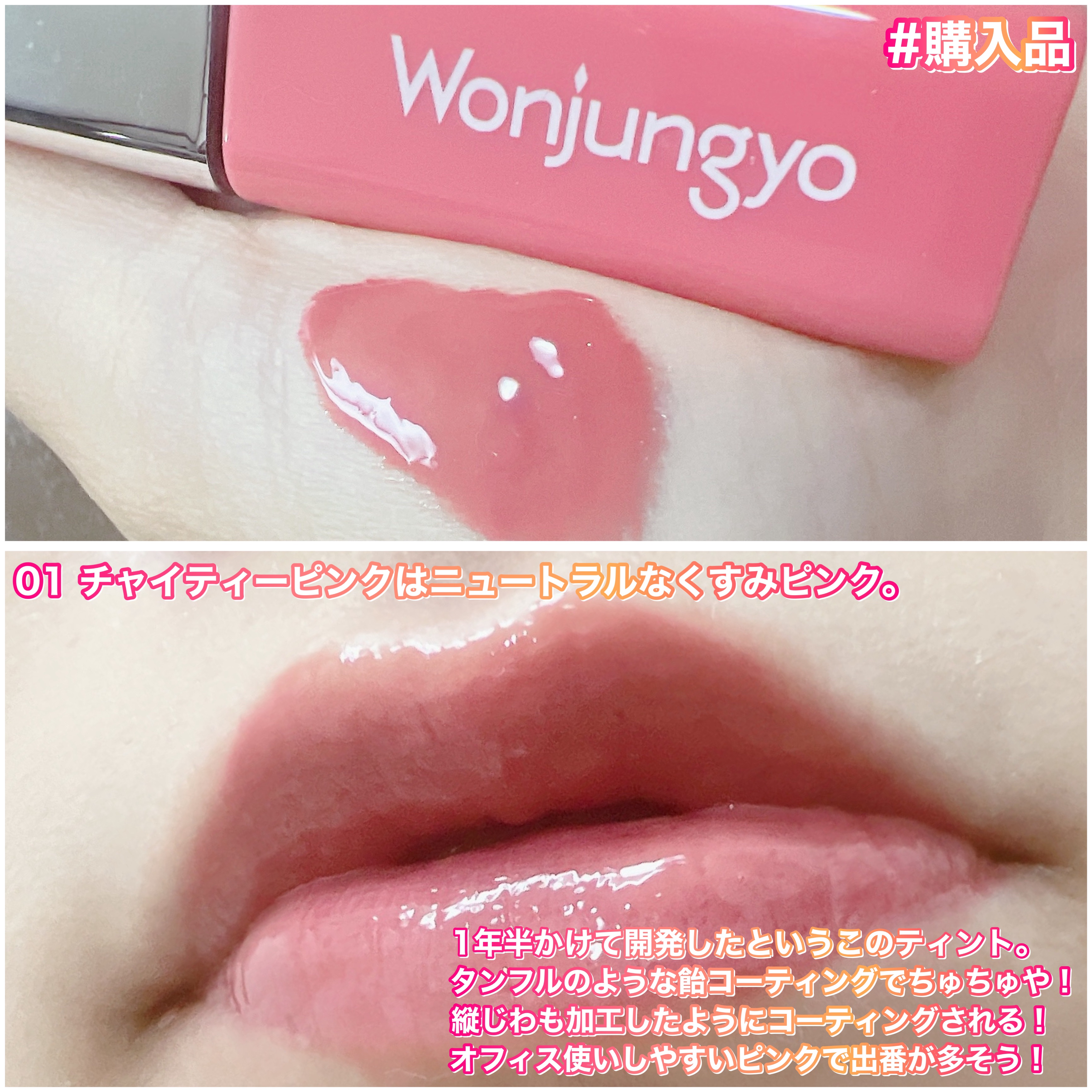 ウォンジョンヨの新作リップ、また売り切れる予感がして気になるカラーを購入しました…!ちゅるんどころかポテっとした厚みのあるテクスチャー。ぷるぷるの鎧(?)を唇に乗せているかのような、ボリューミーなリップに💄 このチャイティーピンクのカラー可愛すぎません?🥹💖ピンクベージュですが、程よい血色感があって唇が消えない🫥✨ ここまでぽってりしたティントは珍しい!ボリューミーなぷるぷるリップメイクをしたい人は要チェック❤️