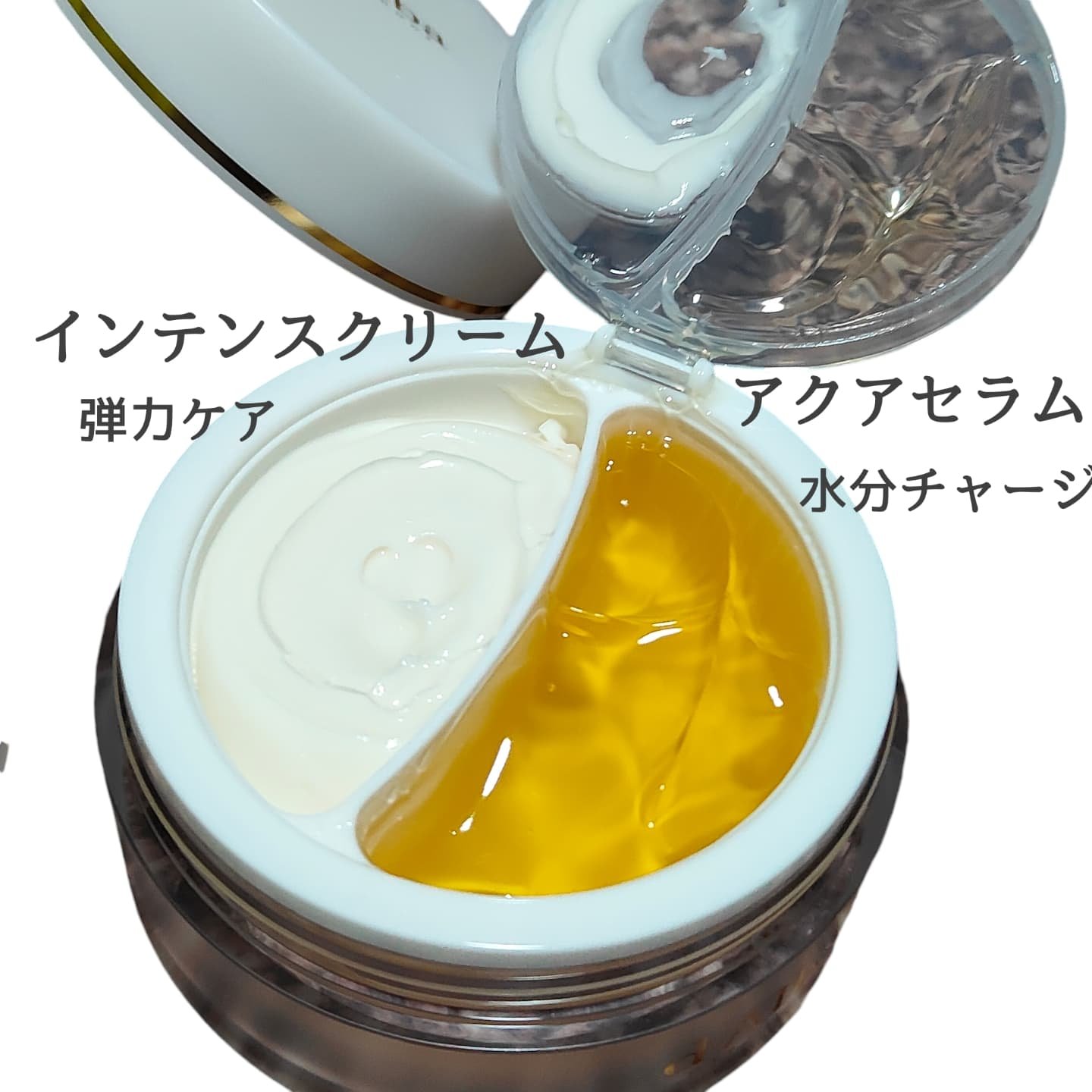 - アクサセラムとインテンスクリームのデュアル・フォーミュラで肌のタイプやコンディションに合わせて 比率を調節してカスタマイズ・ケアします。 ・アクアセラム:ヒアルロン酸、パンテノール、ツボクサエキス*が含まれた、さっぱりとした使用感で肌に水分を与え肌のキメを整えます。*ヒアルロン酸・パンテノール・ツボクサエキス(いずれも保湿成分) ・インテンスクリーム:イタリア産ホワイトトリュフ*が含まれた、もっちりした使用感で肌にうるおいを与えツヤのあるもち肌へ導きます。*ツベルマグナツムエキス(保湿成分) イタリアヴィーガン認証V-LABEL取得 皮膚低刺激テスト済み *全ての方に皮膚刺激が発生しないということではありません。 【使い方】 1. 洗顔後、スパチュラで肌のコンディションによって、セーラムとクリームを適量を取り、 ミックスしてから顔全体に優しく塗り広げ、 吸収させます。※ 必要に応じて、アクアセラムとインテンスクリームは単品でも使用できます。 【使用上の注意】 お肌に異常が生じていないかよく注意して使用してください。化粧品がお肌に合わないとき即ち次のような場合には、使用を中止してください。そのまま使用を続けますと、症状を悪化させることがありますので、皮ふ科専門医等にご相談されることをおすすめします。 (1)使用中、赤味、はれ、かゆみ、刺激、色抜け(白斑等)や黒ずみ等の異常があらわれた場合 (2)使用したお肌に、直射日光があたって(1)のような異常があらわれた場合