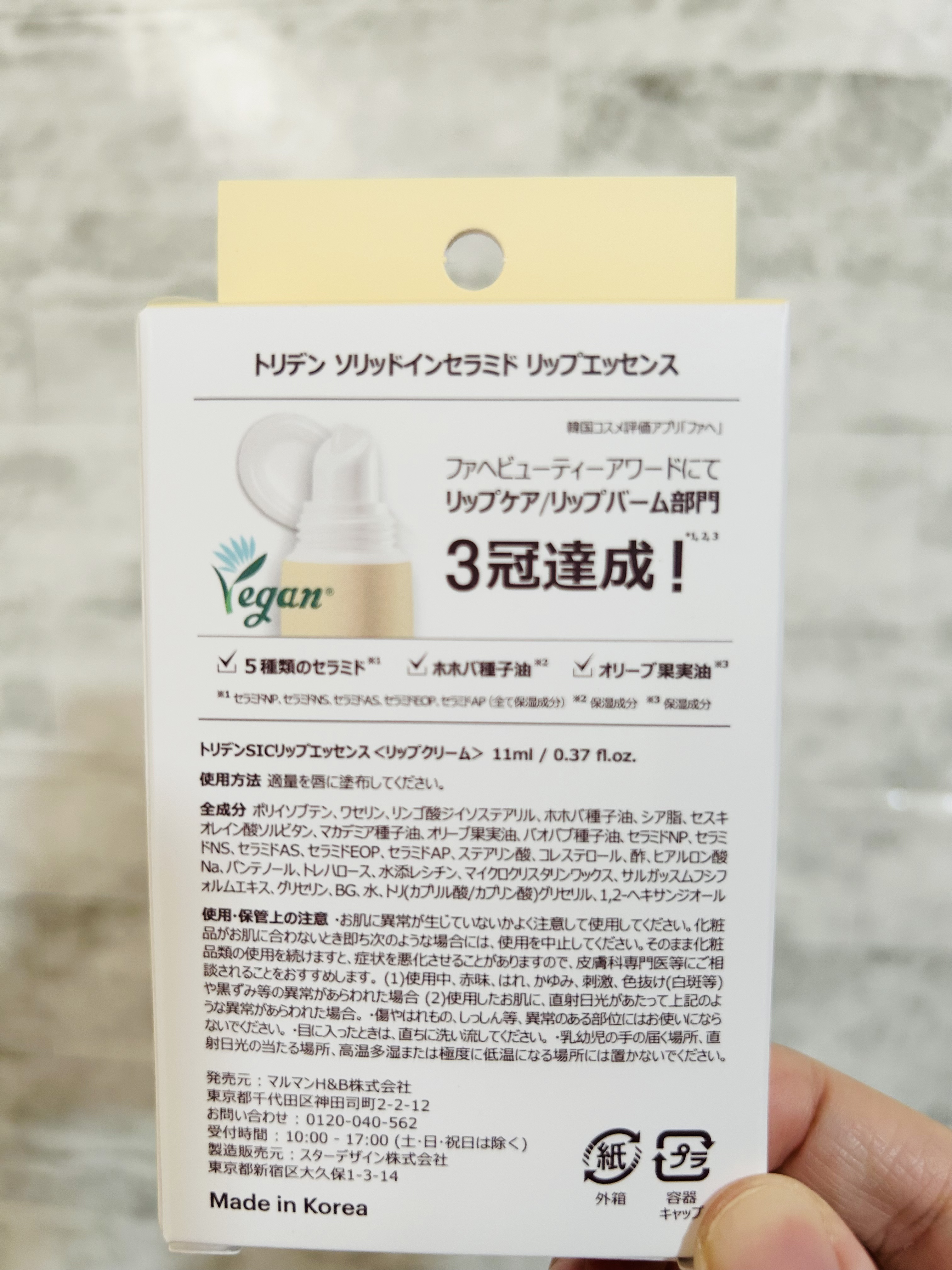 1本で3役の万能リップ。保湿、角質ケア、スリーピングパックとしても使える。 5種類のセラミド、オーガニックホホバ種子油、オリーブ果実油で保湿しながら、済州島産ヒジキ抽出成分とザクロ発酵酢成分が角質ケアをサポートしてくれるそうです♪ テクスチャと保湿力は好きだけれど個人的に私には香りと味がダメでした💦