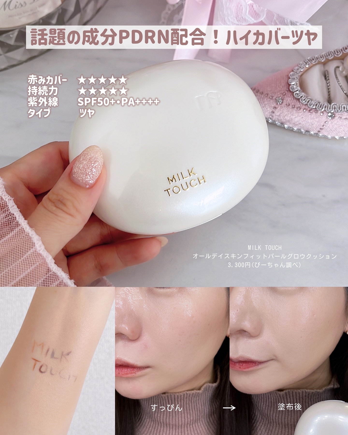 Milk Touch オールデイスキンフィットパールグロウクッション | 3,300円 |