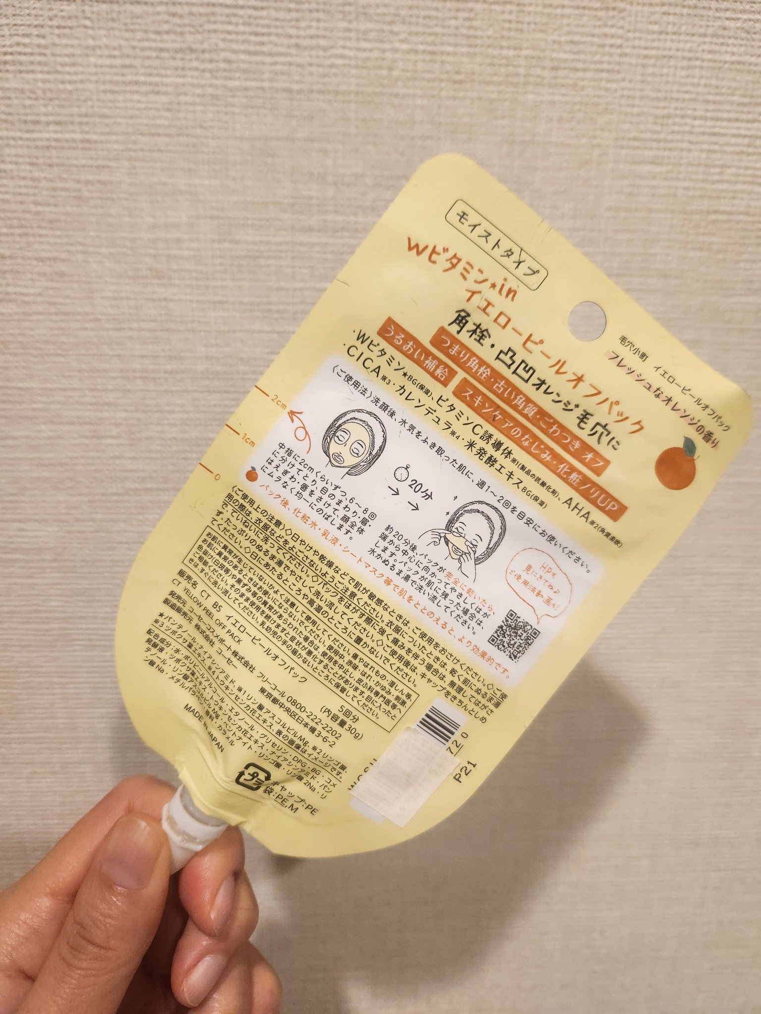 - 【イエロー】 「ピールオフパック」は、粘度のある液状のパック剤で、肌に薄く塗布すると固まって膜になり、それを剥がすことで肌効果を体感できるものです。洗顔では落としきれない古い角質や毛穴よごれを取り除き、つるんとした明るい肌に整えます。 シートマスクブランド『クリアターン』の数あるラインナップの中でも毛穴悩みに対応した「毛穴小町」シリーズから、「ブラックピールオフパック」と「イエローピールオフパック」を発売。どちらも、角栓や古い角質を取り除くだけでなく、次に使うスキンケアのなじみや化粧のりを向上させる効果のあるパックです。 「イエローピールオフパック」は、“オレンジ毛穴”と呼ばれるような、角栓詰まりを取り除いて毛穴の凹凸をケアし、ごわつきのない、もっちりとした肌へ導くパックです。2種のビタミン※1BG(保湿)、ビタミンC誘導体※2(製品の抗酸化剤)、AHA※3(角質柔軟)を配合。ツボクサ葉エキス、米発酵エキス、カンデュラエキス※4BG(保湿)が、肌にうるおいをあたえます。フレッシュなオレンジの香りも特長です。 ※1 パンテノール・ナイアシンアミド ※2 リン酸アスコルビルMg ※3 リンゴ酸 ※4 トウキンセンカ花エキス