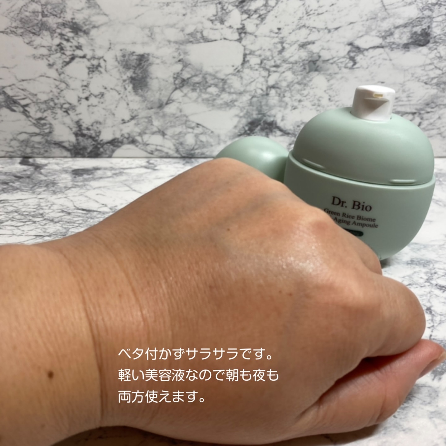美白効果や肌バリア強化をサポートする緑米エキスとDr.Bioが独自に開発したプロバイオティクス(乳酸菌)成分を最適に配合。 水分たっぷりのジェルのようなデクスチャーで肌をうるおいで満たしてくれるような使い心地。 お米の形をイメージした、コロンとしたフォルムのパケが可愛い✨