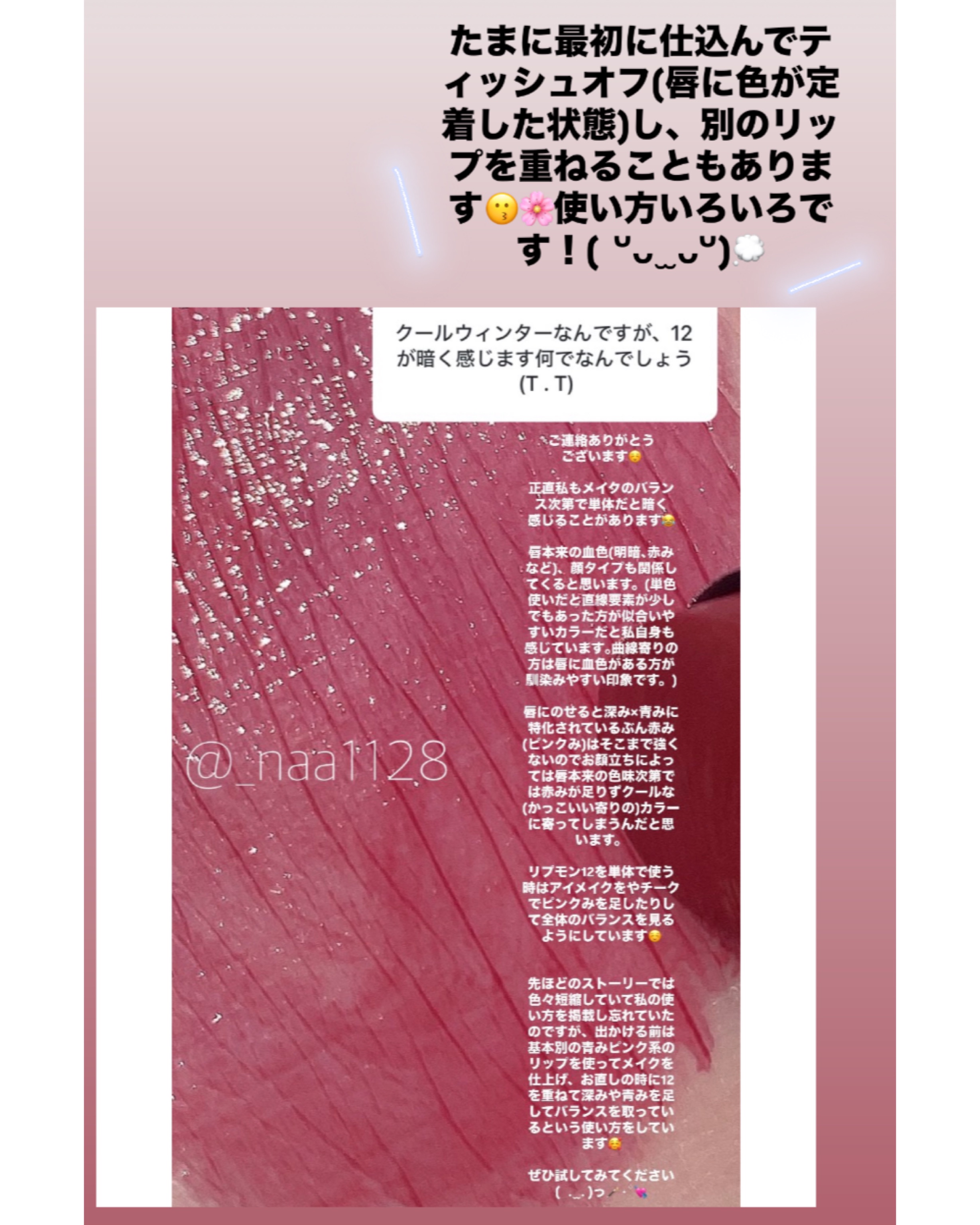 改めて満遍なくいろんな色が出ていて 良いカラバリだわあ!と全色見ながら思いました! なるべくわかりやすくパーソナルカラーの分類を 載せたつもりなので、ぜひ買うときには 画像参考にしてください✌️ 今回の新色3色は丁度今までに無い色で 「これとこれの間が欲しいのよ!」って方に 丁度良さそうでしたね☺️