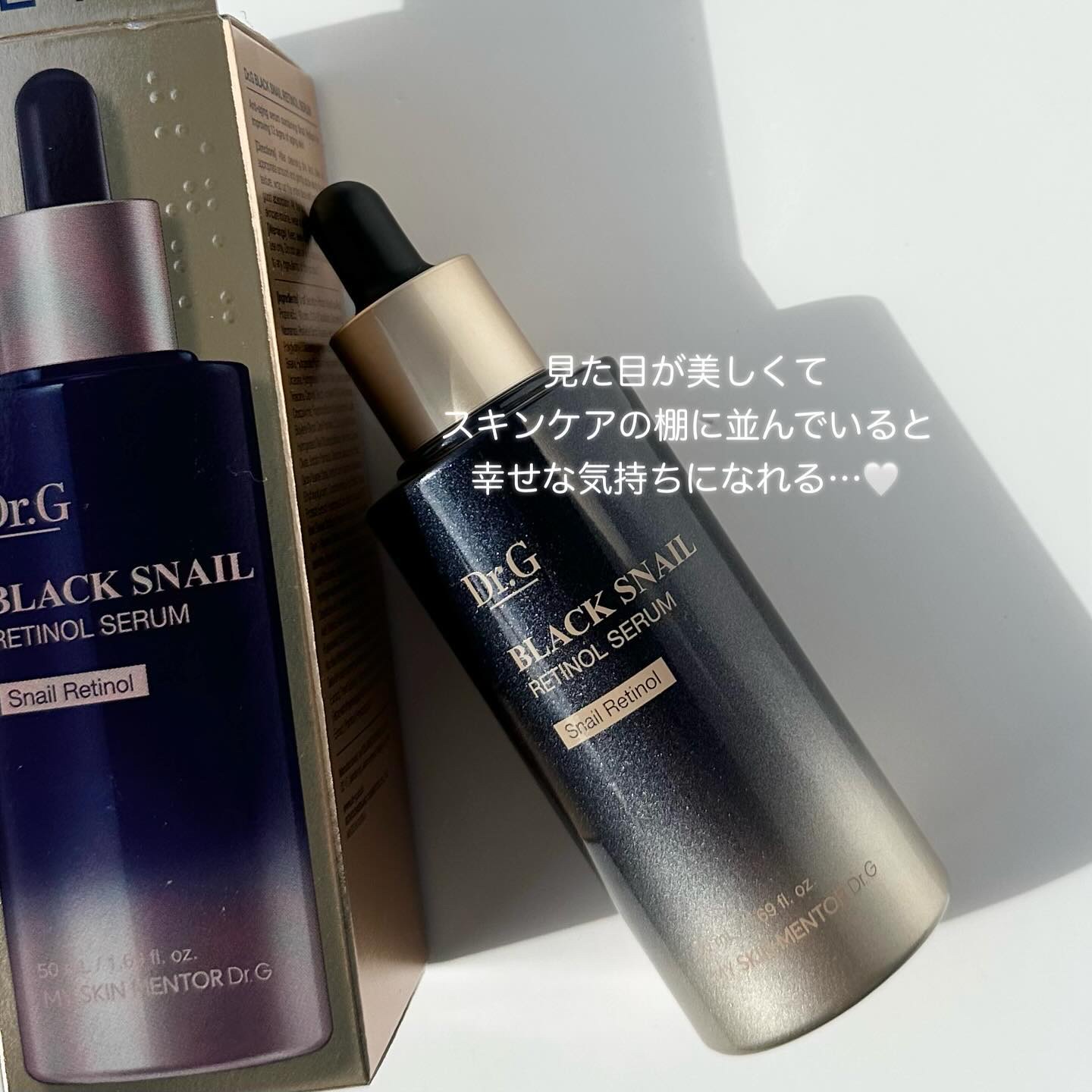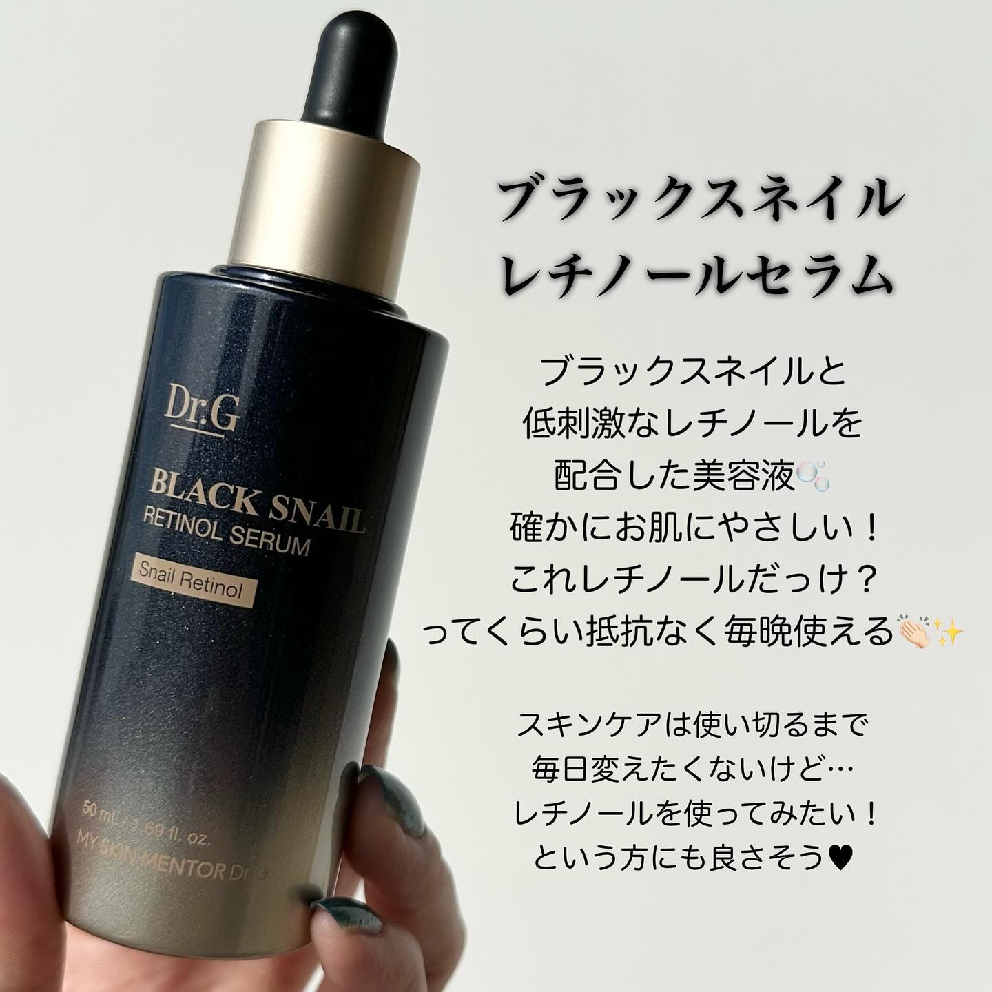 - ブラックスネイル*とレチノール*を配合した、若々しい肌印象に導く美容液です。 Dr.Gのレチノールは独自の成分である、ブラックスネイルレチノール*を使っています! 肌に高い保湿感を与え、肌のキメを整え、弾力やハリのケアを助けるだけでなく、肌の乾燥くすみをケアし、明るい印象のぷるんっとハリのある肌に導きます。 *整肌成分