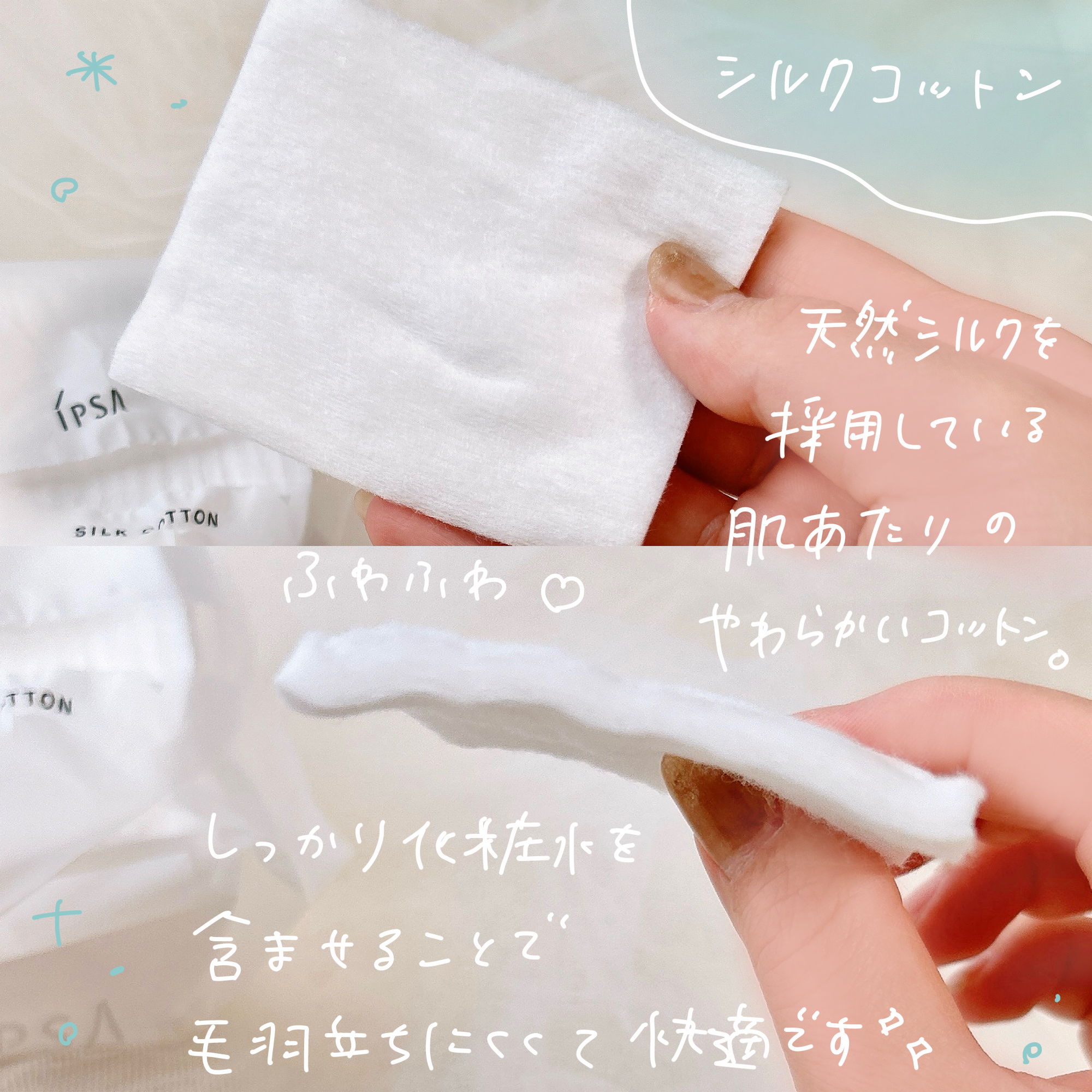 キメを整えて水を溜め込んだようなぷるぷる水感触肌へ導く薬用化粧水.ᐟ.ᐟ アルコール(エタノール)無添加 透明でサラッとしたテクスチャー!シャバシャバでベタつかなくていい🌷 高級天然シルクを配合したコットンはふわっとした触り心地でピリつかなくて◎