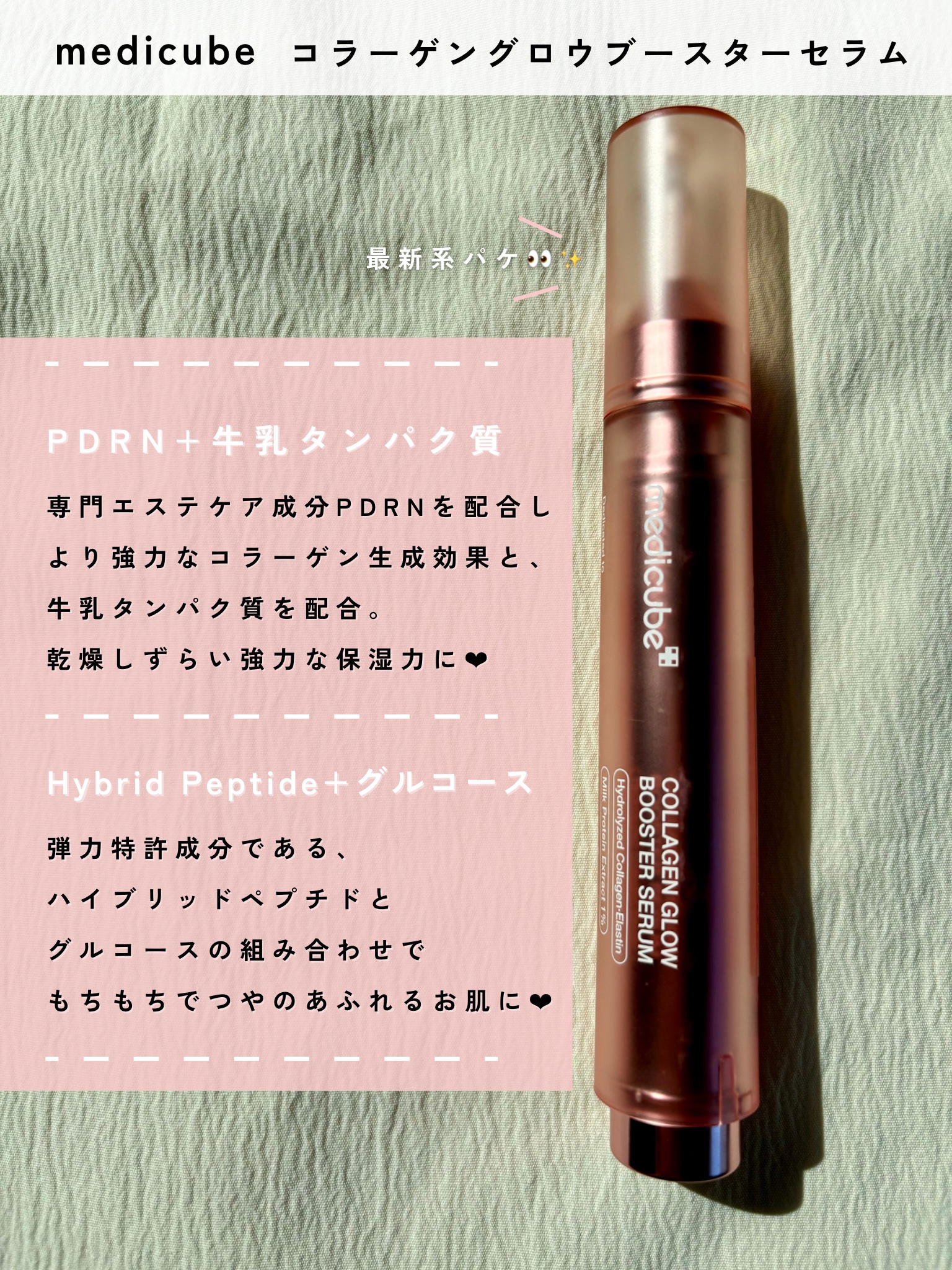 もちもちな肌へ導く美容液 ✰整肌成分PDRN ✰保湿成分コラーゲン ✰整肌成分ペプチド ツヤツヤなメタリックピンクカラーがかわいい注射器型 軽い付け心地で、肌なじみ💮 フローラルな香り付き。