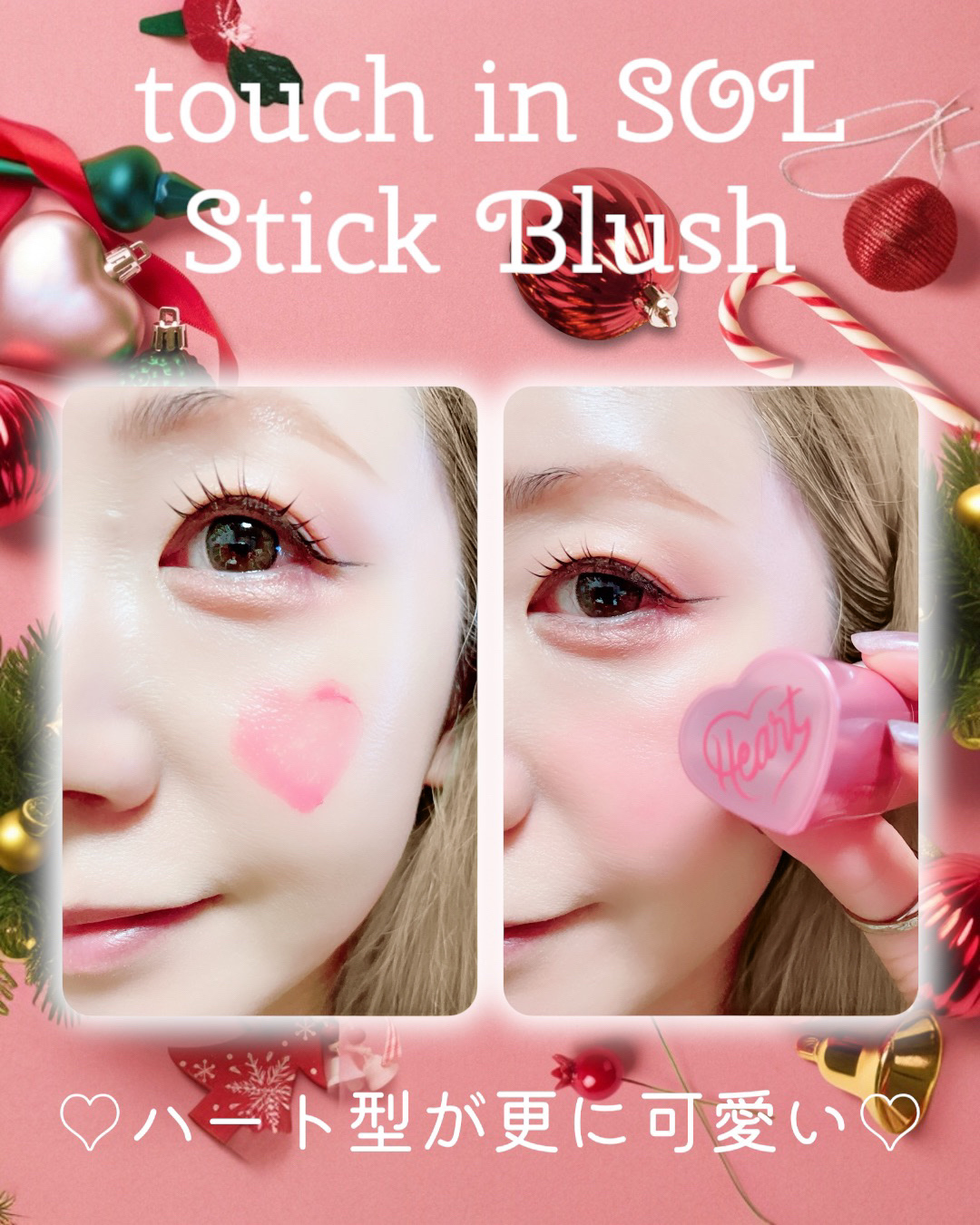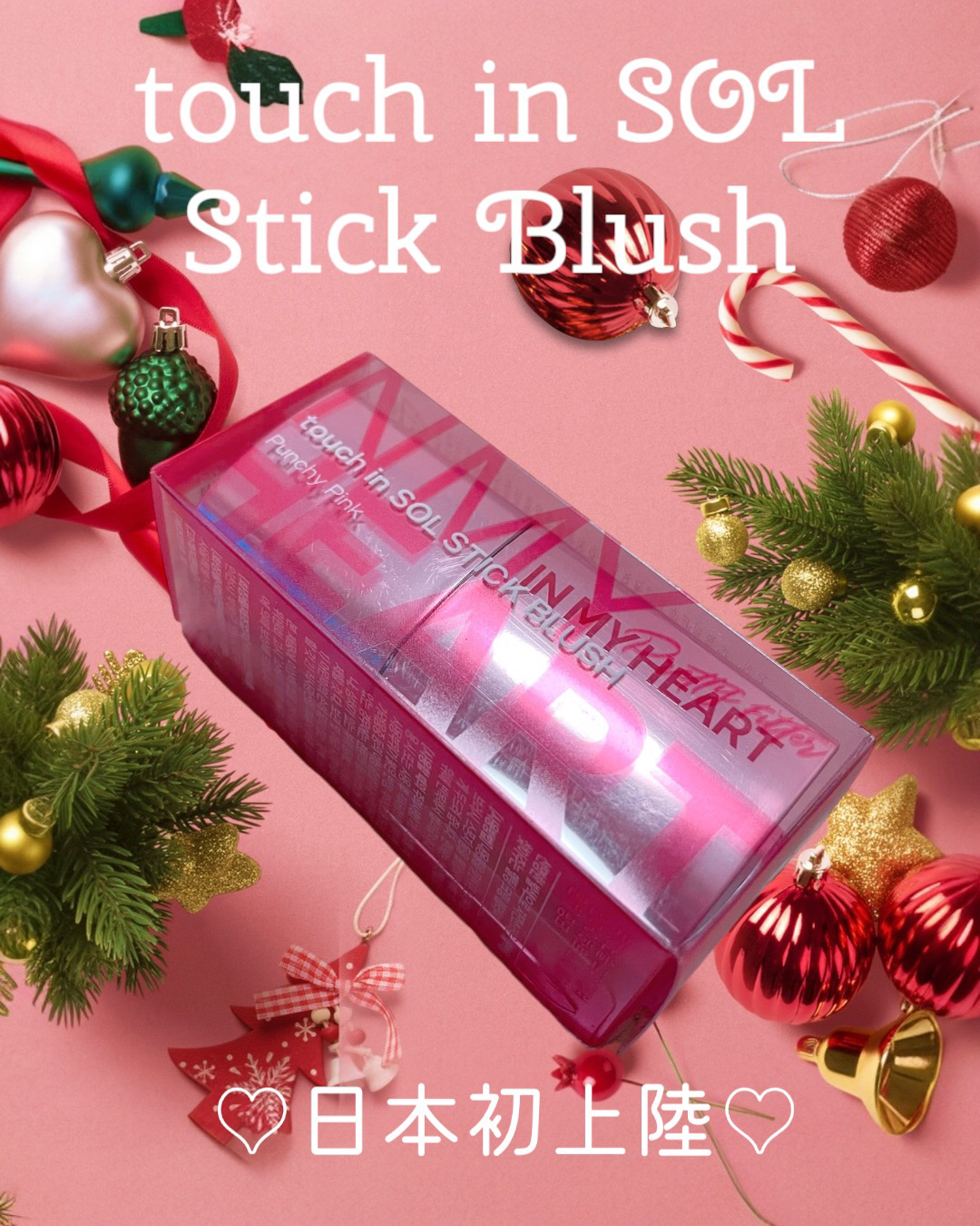 ハート型のスティックチーク! なめらかなテクスチャーでしっとり密着♡ 色ムラになりにくく使いやすいよ✨ パンチピンクは彩度の高い水彩画ピンク! 高発色でぼかしやすいく、色持ちも良き! じゅんわり滲み出たような色ツヤで ほてりメイクにピッタリ♪