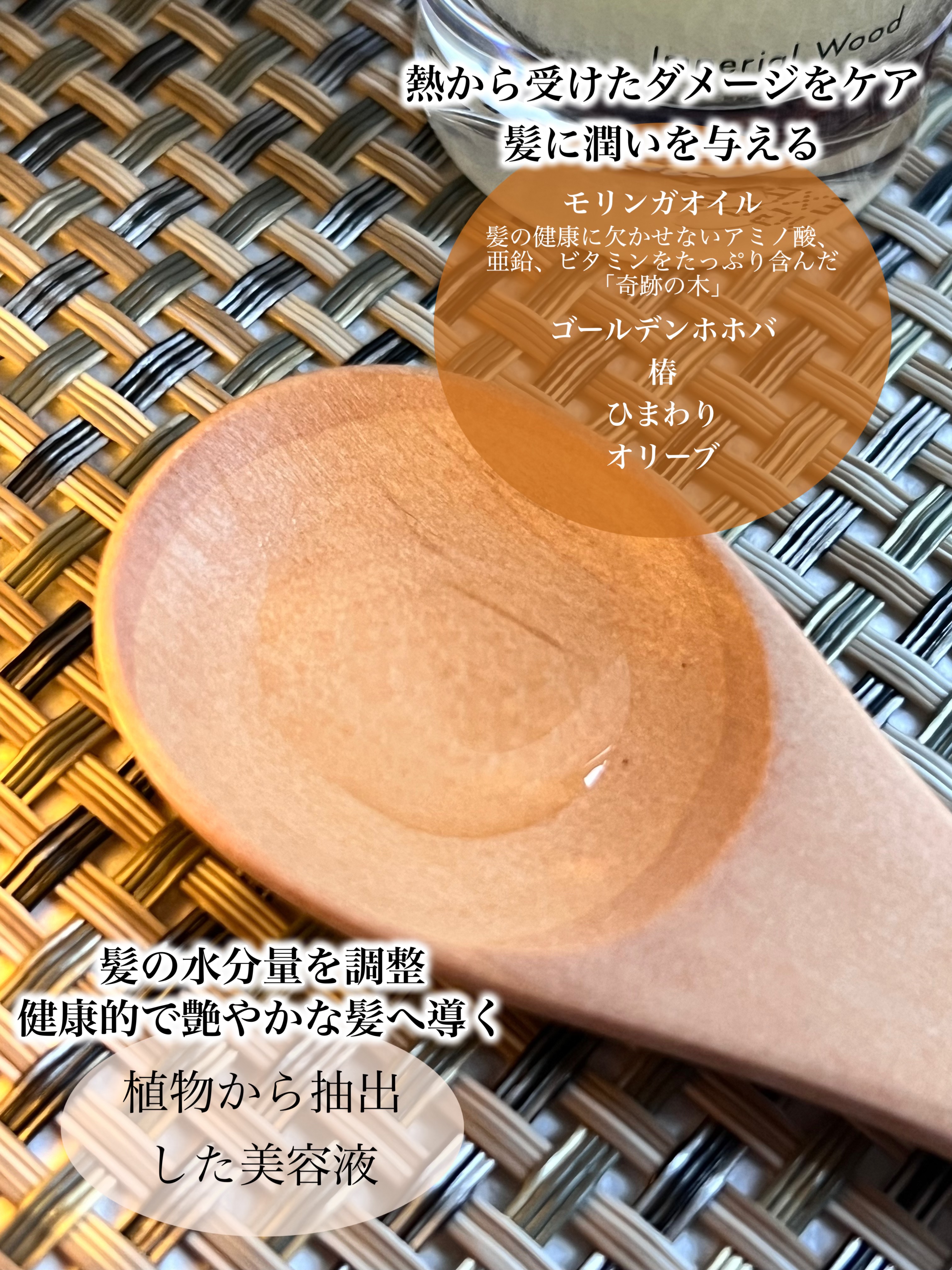 タオルドライ後、500円玉大を髪の根本から毛先へ、ミディアムなので2回(500円玉2個分)なじませています サラサラの水のようなテクスチャーで、濡れた髪にもスーッとなじむので使いやすい オイルのようにベタついたり、ヌルヌルしたりしないので、根本からかきあげながら指を通して毛先にもみこむように使っても全然イヤじゃない オイルなどだと基本毛先から中間までしかなじませられないけれど、これは根本からつけられて、地肌もべたつくこともないから使いやすい 乾かしたあとの髪はサラサラ 乾くまでの時間も少し早いのかもしれない ただ初めて使ったときは香りの強さにビックリしました 私の場合1回目では良さがわからず、使い続けていくうちに髪がサラサラ+ストンとまとまって、良さを実感する事ができました 今ではドライヤーで乾かしたあとの仕上がり、髪がベタつかない使用感などが気に入り、アウトバストリートメントのスタメン入りとなりました