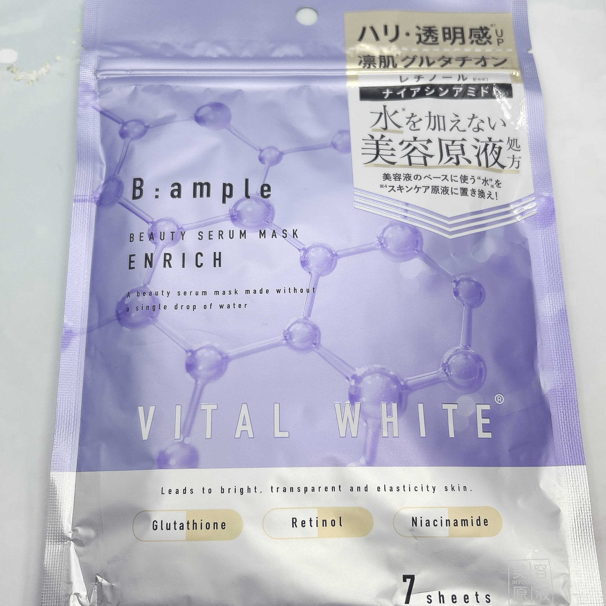 シートマスクの大部分を占めると言われる『水』をコラーゲン原液に置き換え、贅沢を極めた『水を加えない』美容原液マスクとのこと。 浸透型VC、ガラクトミセス、ナイアシンアミドと嬉しい成分が配合されていて、毛穴・くすみにアプローチするクリアタイプ。 パッケージのイエローがビタミンCを連想させてくれるので気分上がります♪