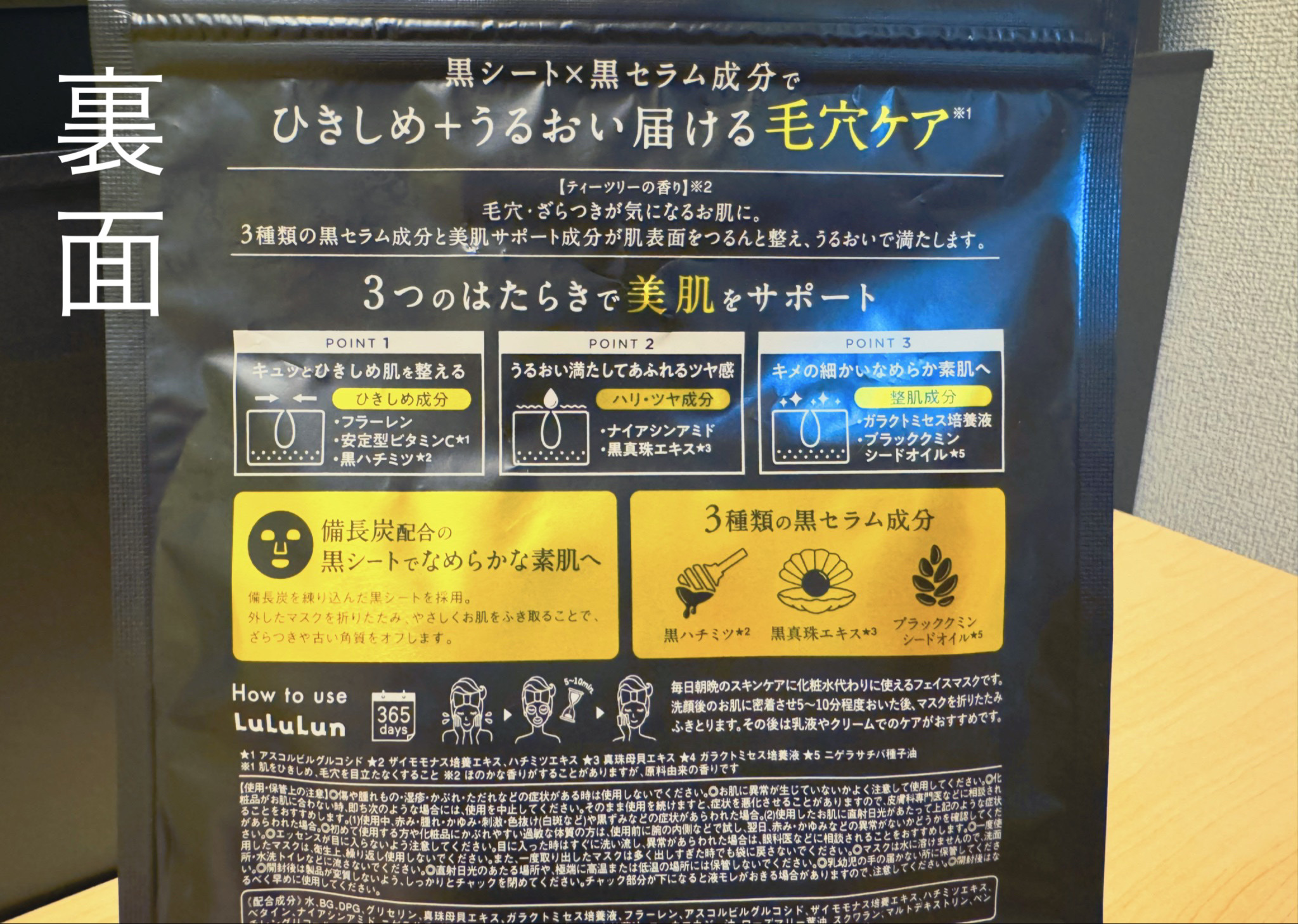 - ルルルンハイドラシリーズから新登場。 備長炭配合の黒シート×黒セラム成分でひきしめ+うるおい届ける毛穴ケア※。 毛穴・ざらつきが気になるお肌におすすめです。3種類の黒セラム美容液と美肌サポート成分がお肌の表面をつるんと整え、うるおいで満たします。 しっとり吸い付くような、なめらかな素肌へ。(※肌をひきしめ、毛穴を目立たなくすること)