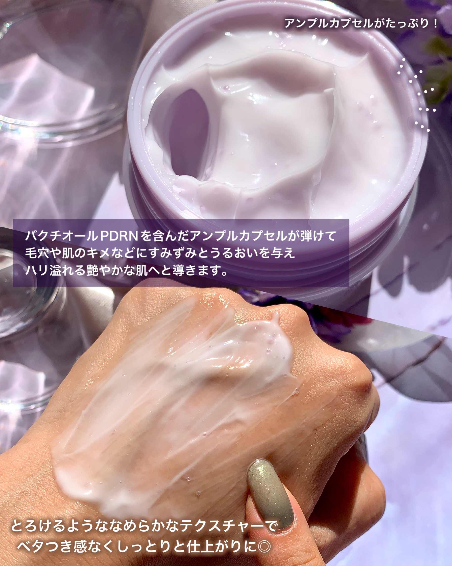 | スパチュラ付きで衛生的! 紫のツブツブが入っていて もっちりとした柔らかいクリーム💕 すーっと伸びが良いです🙌 | 詳細を見る | ||