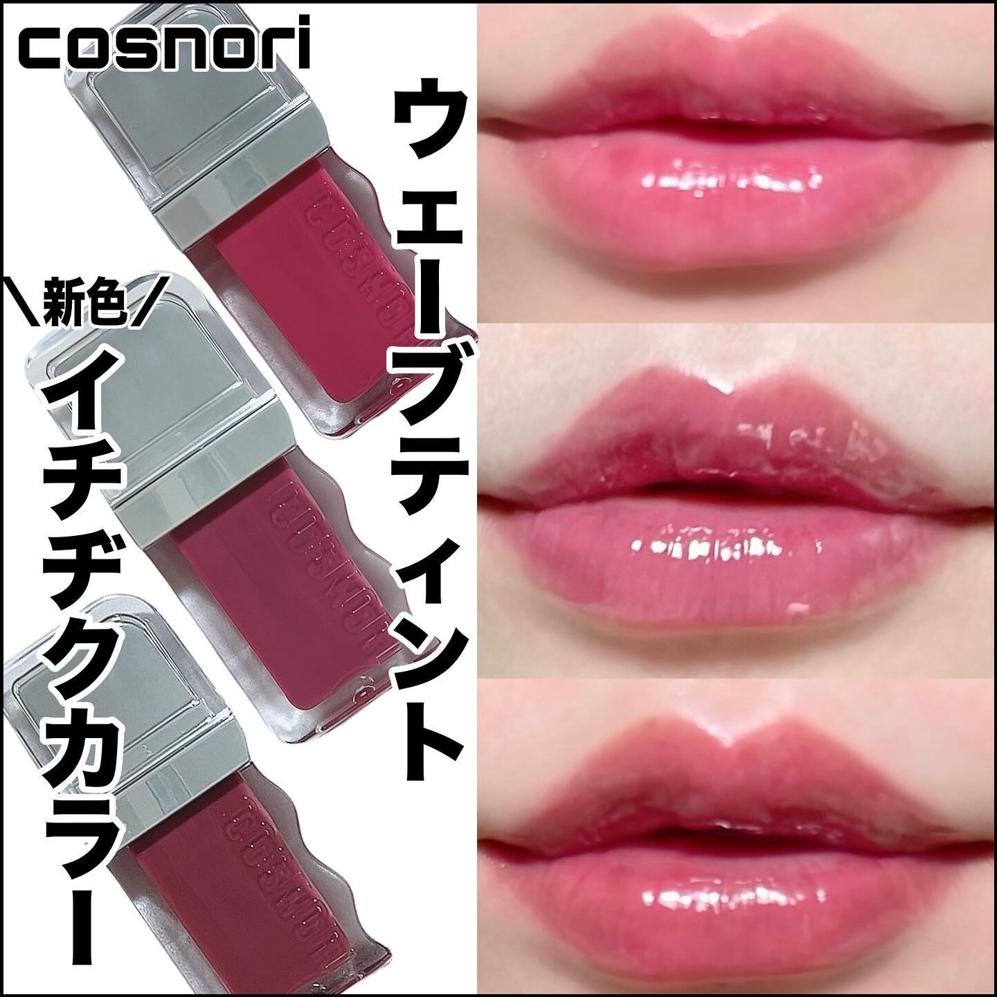 - クリアに満ち溢れる3層ガラス玉光沢がかわいい!コスノリからカラーリップが登場! 軽い付け心地なのにしっかりうるつや・ウォーターエッセンス38%とオイルのこだわりの配合率で、べたつかずに軽いフィッティングでツヤを演出します。 植物由来保湿オイルで唇にやさしい使い心地、しっとりした保湿効果が持続します。 1度塗りでシアーなナチュラルつや感、2.3度重ね塗りをすることで、ガラス玉のようなぽってり*うるツヤ唇へ導きます。 *メイク効果