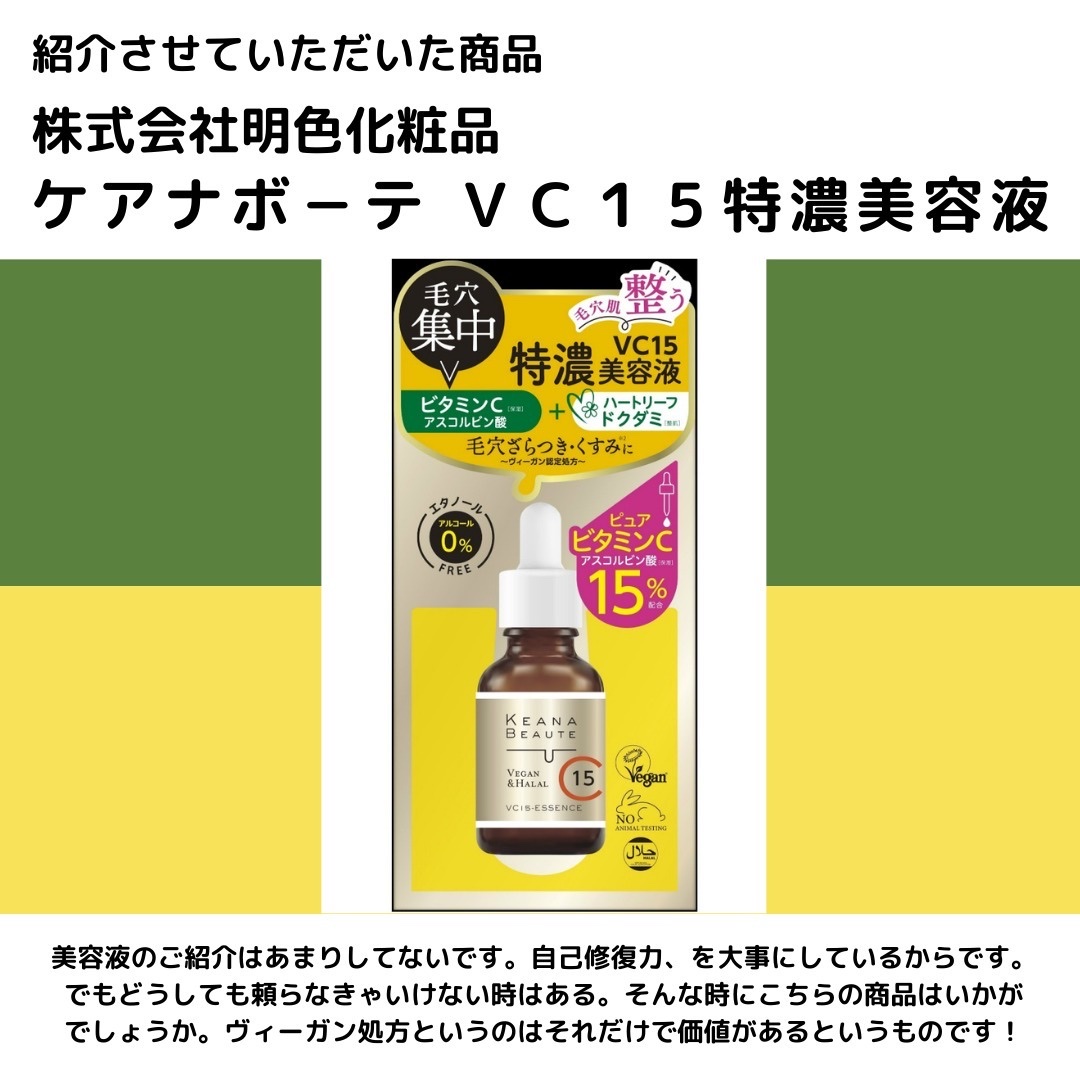 ケアナボーテVC15特濃美容液ピュアビタミンC15%高配合の美容液💫深刻な毛穴ざらつき・くすみにアプローチするんだって👀さらりとしたテクスチャー。スーッとお肌に伸び広がります。サッと肌に馴染んで使いやすい◎べたつきはなく、軽やかな使い心地。し...