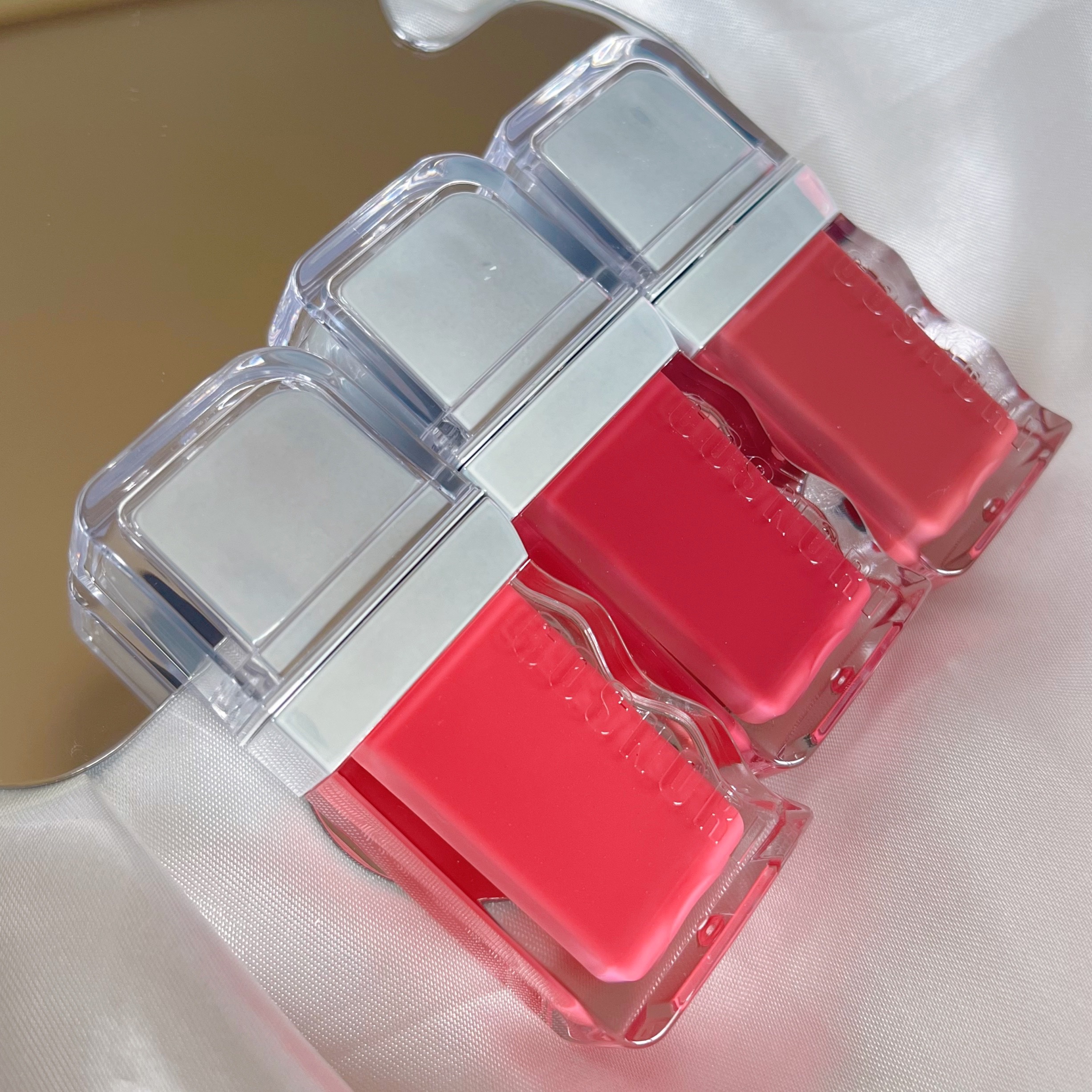 - <01 ソフィー(Surfy)> リンゴ酸ジイソステアリル、ジフェニルシロキシフェニルトリメチコン、精製水、ジフェニルジメチコン、ビスジグリセリルポリアシルアジペート-2、水添ポリイソブテン、ポリグリセリン-3、ポリソルベート60、セチルPEG/PPG-10/1ダイメチコン、イソステアリン酸ソルビタン、BG、ペンチレングリコール、1,2-ヘキサンジオール、ダイメジメチコン、アクリル酸ヒドロキシエチル/ナトリウムアクリロイルジメチルタウリン酸共重合体スクアラン、セテアレス-20、二酸化チタン、エチルヘキシルグリセリン、赤色227号、黄色5 号、香料、赤色104号(1)、水酸化酸化アルミニウム、ポリアクリル酸アンモニウム溶液、黄色4号、フェノキシエタノール、マカデミア種子油、ローズヒップ油、ツバキ油、トコフェロール <02 ピンクラッシュ(Pinkrush)> リンゴ酸ジイソステアリル、ジフェニルシロキシフェニルトリメチコン、精製水、ビスジグリセリルポリアシルアジペート-2、ジフェニルジメチコン、水添ポリイソブテン、ポリグリセリン-3、ポリソルベート60、セチルPEG/PPG-10/1ダイメチコン、イソステアリン酸ソルビタン、BG、ダイメジメチコン、ペンチレングリコール、1,2-ヘキサンジオール、アクリル酸ヒドロキシエチル/ナトリウムアクリロイルジメチルタウリン酸共重合体スクアラン、セテアレス-20、二酸化チタン、エチルヘキシルグリセリン、赤色227号、黄色5 号、香料、水酸化酸化アルミニウム、ポリアクリル酸アンモニウム溶液、フェノキシエタノール、マカデミア種子油、ローズヒップ油、ツバキ油、トコフェロール <03 グレア(Glare) > リンゴ酸ジイソステアリル、ジフェニルシロキシフェニルトリメチコン、精製水、ビスジグリセリルポリアシルアジペート-2、ジフェニルジメチコン、水添ポリイソブテン、ポリグリセリン-3、ポリソルベート60、セチルPEG/PPG-10/1ダイメチコン、イソステアリン酸ソルビタン、BG、ペンチレングリコール、1,2-ヘキサンジオール、ダイメジメチコン、アクリル酸ヒドロキシエチル/ナトリウムアクリロイルジメチルタウリン酸共重合体スクアラン、セテアレス-20、二酸化チタン、エチルヘキシルグリセリン、黄色5 号、香料、赤色104号(1)、赤色227号、水酸化酸化アルミニウム、ポリアクリル酸アンモニウム溶液、黄色4号、フェノキシエタノール、ブリリアントブルーFCF、マカデミア種子油、ローズヒップ油、ツバキ油、トコフェロール <04 ウィッティー(Witty)> リンゴ酸ジイソステアリル、ジフェニルシロキシフェニルトリメチコン、精製水、ビスジグリセリルポリアシルアジペート-2、ジフェニルジメチコン、水添ポリイソブテン、ポリグリセリン-3、ポリソルベート60、セチルPEG/PPG-10/1ダイメチコン、イソステアリン酸ソルビタン、BG、ダイメジメチコン、ペンチレングリコール、1,2-ヘキサンジオール、アクリル酸ヒドロキシエチル/ナトリウムアクリロイルジメチルタウリン酸共重合体スクアラン、セテアレス-20、二酸化チタン、黄色5 号、赤色227号、エチルヘキシルグリセリン、香料、水酸化酸化アルミニウム、ポリアクリル酸アンモニウム溶液、フェノキシエタノール、マカデミア種子油、ローズヒップ油、ツバキ油、トコフェロール <05 パンチ(Punch)> リンゴ酸ジイソステアリル、ジフェニルシロキシフェニルトリメチコン、精製水、ジフェニルジメチコン、ビスジグリセリルポリアシルアジペート-2、水添ポリイソブテン、ポリグリセリン-3、ポリソルベート60、セチルPEG/PPG-10/1ダイメチコン、イソステアリン酸ソルビタン、BG、ペンチレングリコール、1,2-ヘキサンジオール、ダイメジメチコン、アクリル酸ヒドロキシエチル/ナトリウムアクリロイルジメチルタウリン酸共重合体二酸化チタン、スクアラン、セテアレス-20、黄色5 号、エチルヘキシルグリセリン、香料、赤色227号、赤色104号(1)、水酸化酸化アルミニウム、ポリアクリル酸アンモニウム溶液、フェノキシエタノール、マカデミア種子油、ローズヒップ油、ツバキ油、トコフェロール <06 ディア(Dear)> リンゴ酸ジイソステアリル、ジフェニルシロキシフェニルトリメチコン、精製水、ジフェニルジメチコン、ビスジグリセリルポリアシルアジペート-2、水添ポリイソブテン、ポリグリセリン-3、ポリソルベート60、セチルPEG/PPG-10/1ダイメチコン、イソステアリン酸ソルビタン、BG、ペンチレングリコール、1,2-ヘキサンジオール、ダイメジメチコン、アクリル酸ヒドロキシエチル/ナトリウムアクリロイルジメチルタウリン酸共重合体スクアラン、セテアレス-20、二酸化チタン、エチルヘキシルグリセリン、黄色5 号、赤色227号、香料、水酸化酸化アルミニウム、黄色4号、ポリアクリル酸アンモニウム溶液、フェノキシエタノール、マカデミア種子油、ブリリアントブルーFCF、ローズヒップ油、ツバキ油、トコフェロール <07 カインド(Kind)> リンゴ酸ジイソステアリル、ジフェニルシロキシフェニルトリメチコン、精製水、ジフェニルジメチコン