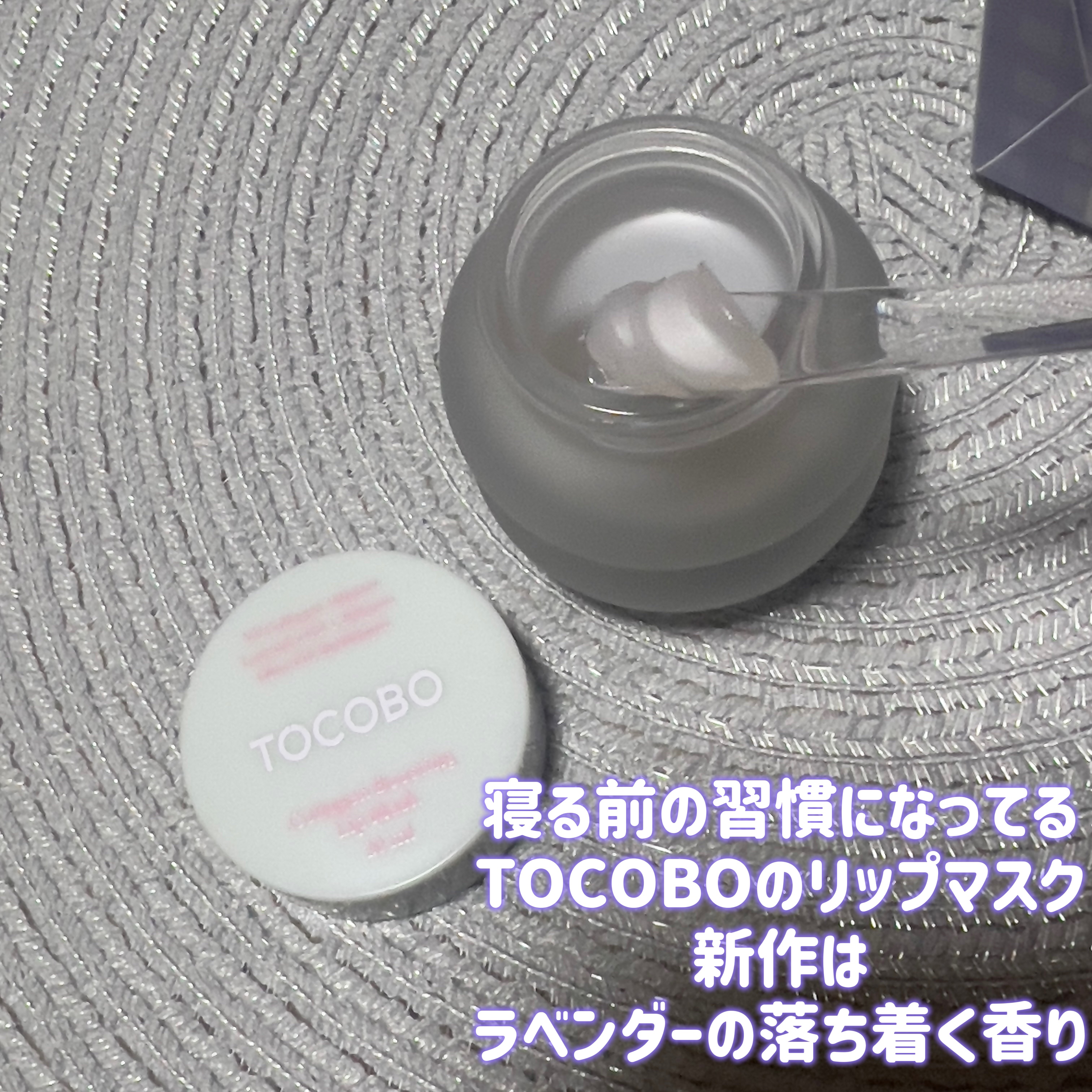 しっとりプリプリ唇へ導く「トコボ」のリップマスクが新登場♡ ラベンダーやオリーブオイルを保湿として配合し、保護膜が水分の蒸発を防いでくれるんだって♪ とろけるような柔らかいテクスチャーで唇にするんと密着してくれるよ。ベタつかずにちゅるんとしてるから、寝ている間にも付けやすかった◎ ぷっくりした形のパケもめちゃかわいい💕