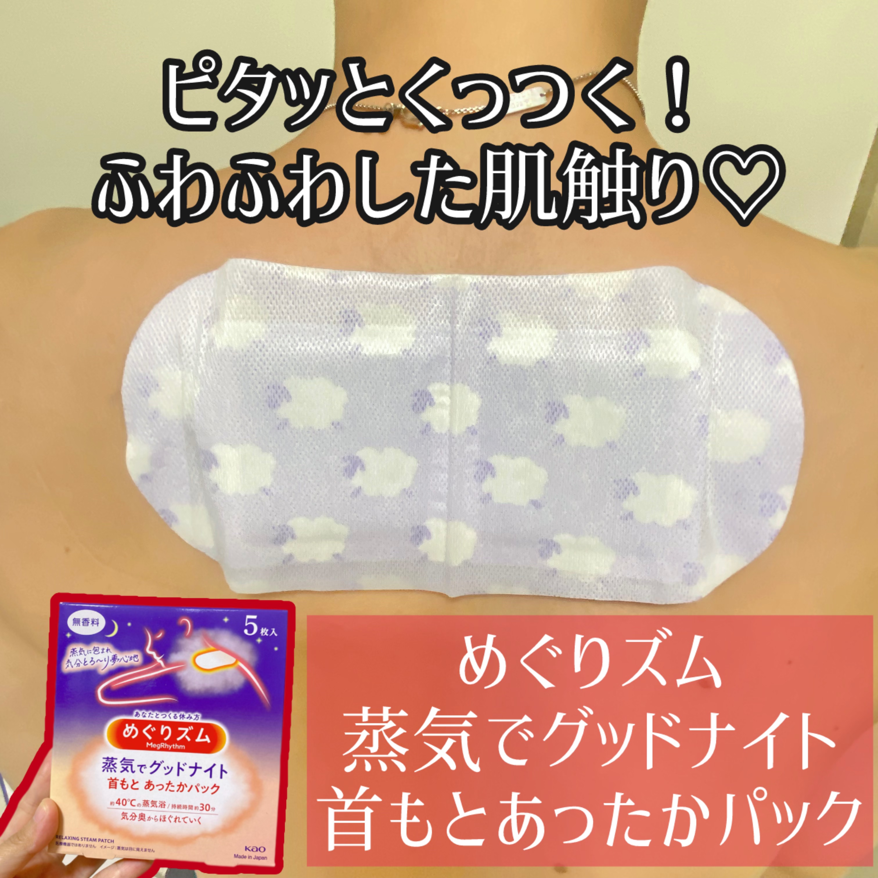 寝る前のリラックスタイムにぽかぽか心地よい〜☺️ どれもじんわり温かくて気持ちいい💕 蒸気でグッドナイトは首もと専用で、首元にじんわり優しいぬくもりを感じられます! じんわりスチーム足パックは足が疲れてる時や足が冷えてるときに使うとポカポカして気持ちいいです💕