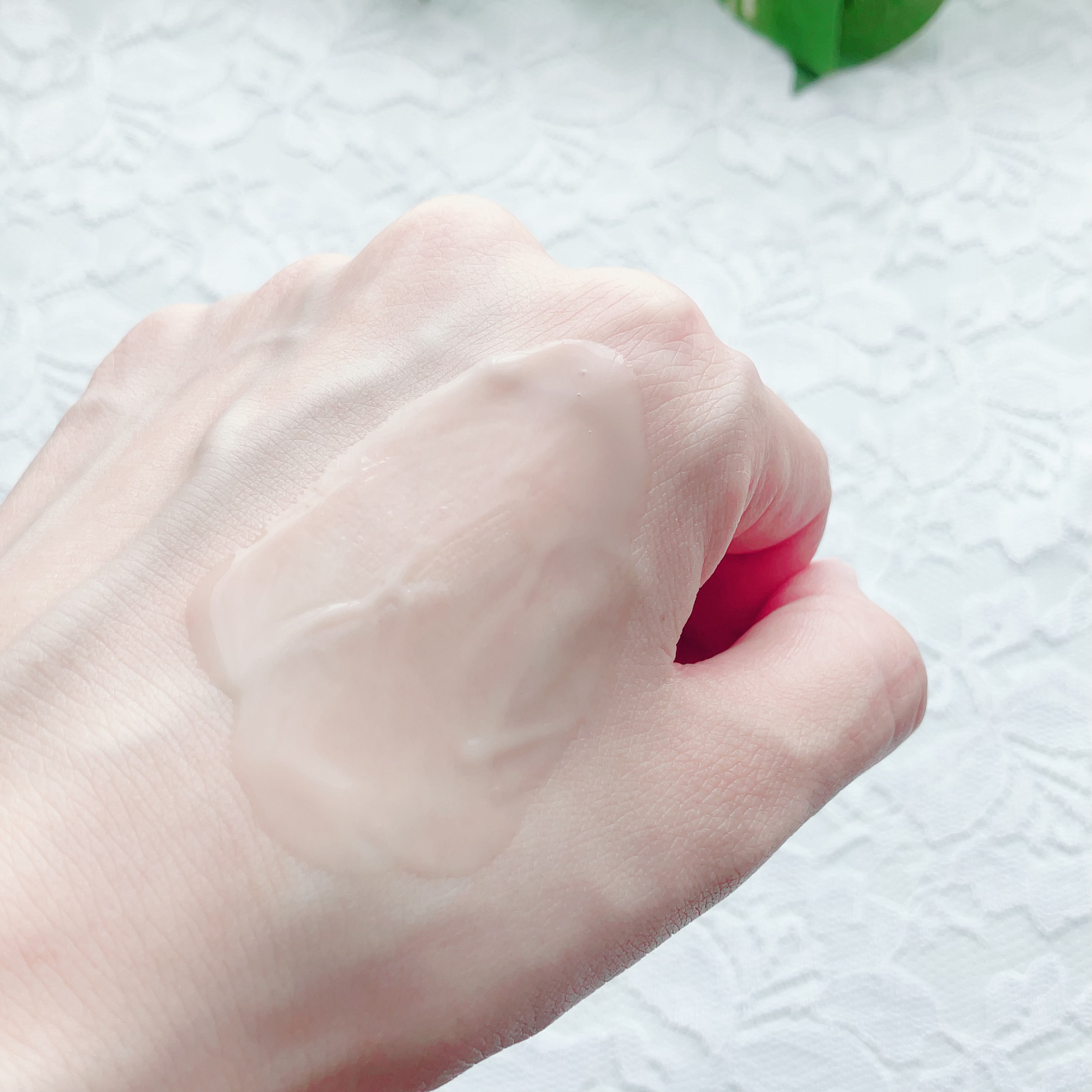 さらさらで伸びが良いテクスチャー。 肌への密着感もあって、ピンクベージュの色みが毛穴のカバーとほんんのりトーンアップも。 クリームのようなテクスチャー。 肌にのせすぎると白っぽくなるので、少しずつ伸ばすのが◎ なめらかテクスチャー。 細かいパールが入ってますが、ギラギラしたりもなく自然な感じ。
