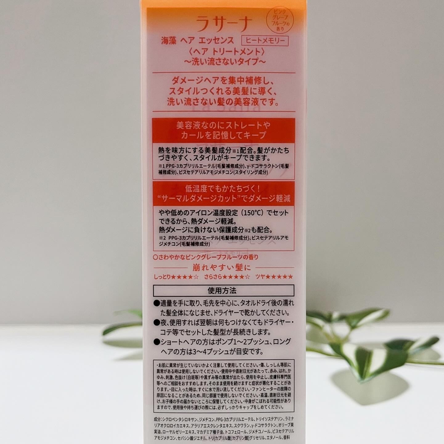 ラサーナ ラサーナ 海藻 ヘア エッセンス ヒートメモリー ピンクグレープフルーツの香り | 3,080円 |