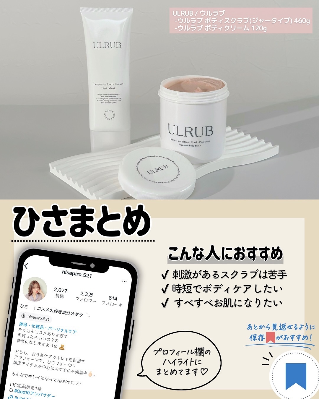 - 毎日のボディケアがもっと手軽に。 大注目の香水スクラブ『ULRUB』から待望のお求めやすい価格”2970円”が新登場! ※230g 上質なまま、よりお求めやすい価格に 2,970円(税込) 沖縄生まれの天然素材で叶える つるすべ美肌への近道 ■ 選ばれる3つの理由 微細な沖縄の塩と天然サンゴ粉末(スクラブ剤)配合で ゴワつく角質もやさしい使い心地でオフ。 ざらつきをケア! 敏感肌さんにも配慮した処方。 毛穴汚れを吸着し 透明感のある素肌へ。 毎日続けやすい、ちょうどいいサイズ感 ぜひ、この機会にお試しください♪