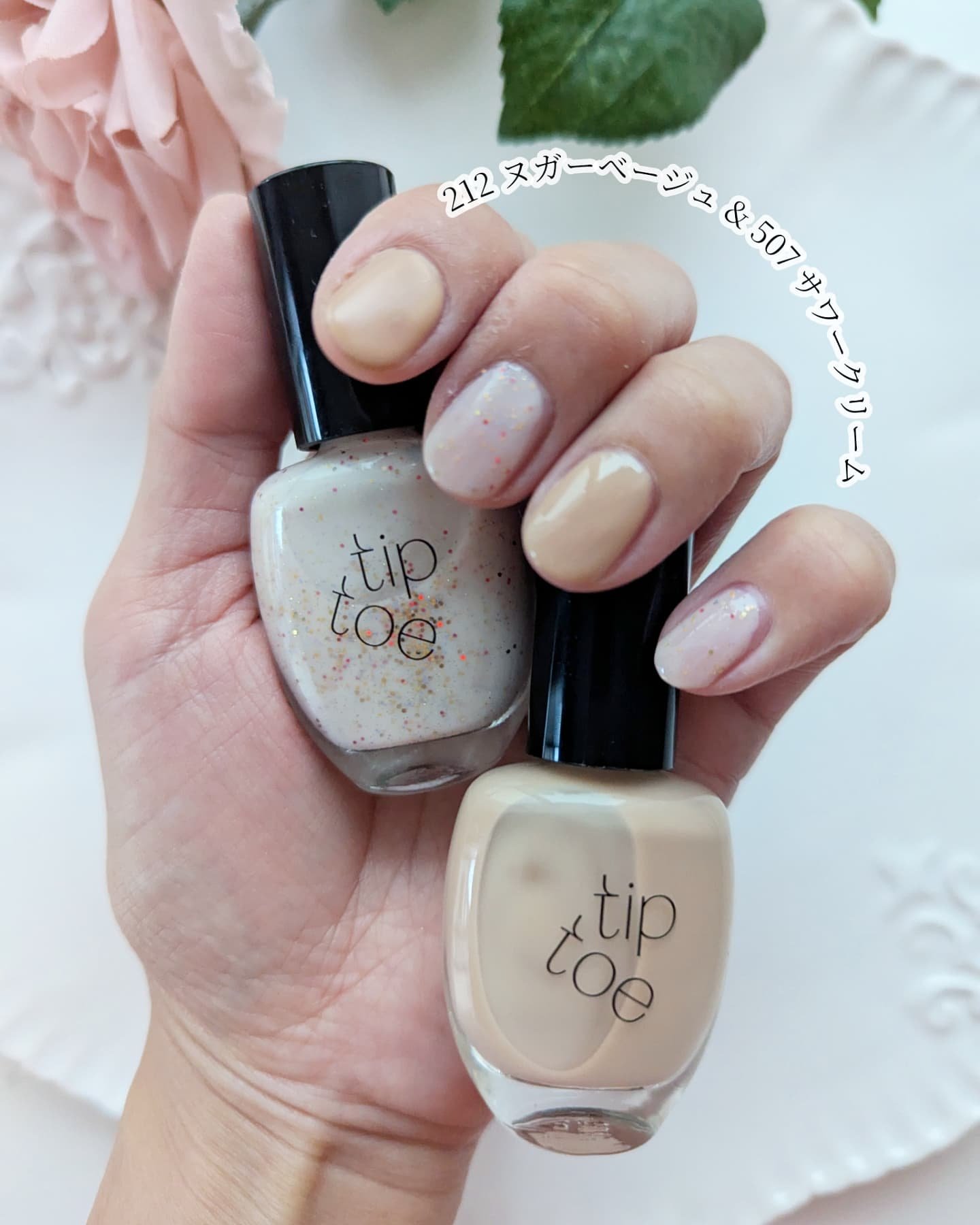 韓国で有名なネイルブランド(オリーブヤング1位)tiptoeのネイルポリッシュを3色レビュー👀 軽快で強烈なふたつのダンスのようなブリックレッドにカラードットグリッターを混ぜたネイル ブラシはイタリア製のUカットブラシ 広がりがよくムラになりにくいので好印象でした◎