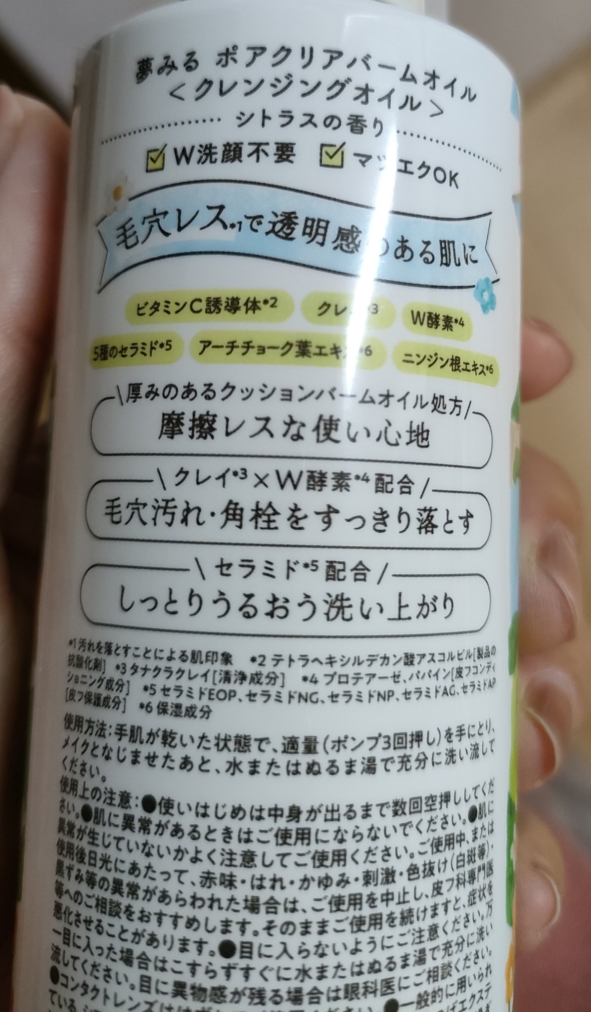 - <夢みる ポアクリアバームオイル> トリエチルヘキサノイン、ヒマワリ種子油、ホホバ種子油、トリイソステアリン酸PEG-20グリセリル、トリイソステアリン酸ポリグリセリル-2、テトラヘキシルデカン酸アスコルビル、タナクラクレイ、プロテアーゼ、パパイン、セラミドEOP、セラミドNG、セラミドNP、セラミドAG、セラミドAP、アーチチョーク葉エキス、ニンジン根エキス、水、水添レシチン、フィトステロールズ、ダイズ油、BG、デキストリン、トリ(ベヘン酸/イソステアリン酸/エイコサン二酸)グリセリル、(ベヘン酸/エイコサン二酸)グリセリル、リン酸2Na、リン酸K、トコフェロール、フェノキシエタノール、香料