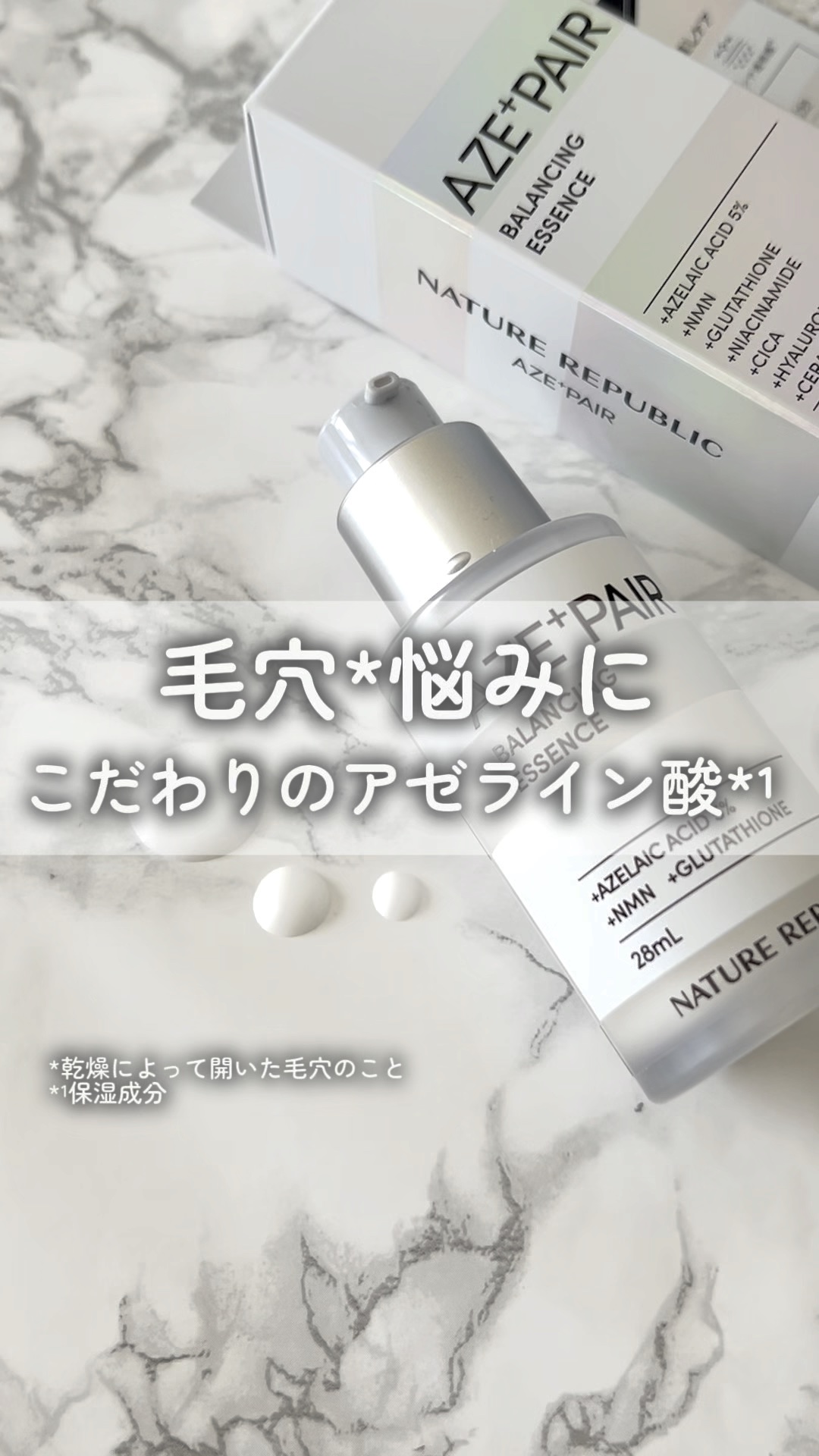 - 【韓国の肌管理*から発想を得たアゼペア】 高濃度*1の純アゼライン酸*2と厳選した美容成分が皮脂トラブル*3や肌荒れをしっかり防ぎながらも毛穴*4をケアして透明感*5のある肌へと整えます。 美容液には純アゼライン酸*2を5%配合しており、ミルクタイプのエッセンスが濃密なうるおいを素肌に届けます。普段のスキンケアにプラスするだけで皮脂トラブル*3をケアし、肌荒れを防ぎます。 先行発売:2024年8月31日よりロフト、PLAZA・MINiPLA、公式オンラインストアにて先行発売。 *うるおいケアのこと*1当社比*2保湿成分*3過剰な皮脂の分泌による肌荒れのこと*4乾燥によって開いた毛穴のこと*5うるおいを与えることによる肌印象のこと