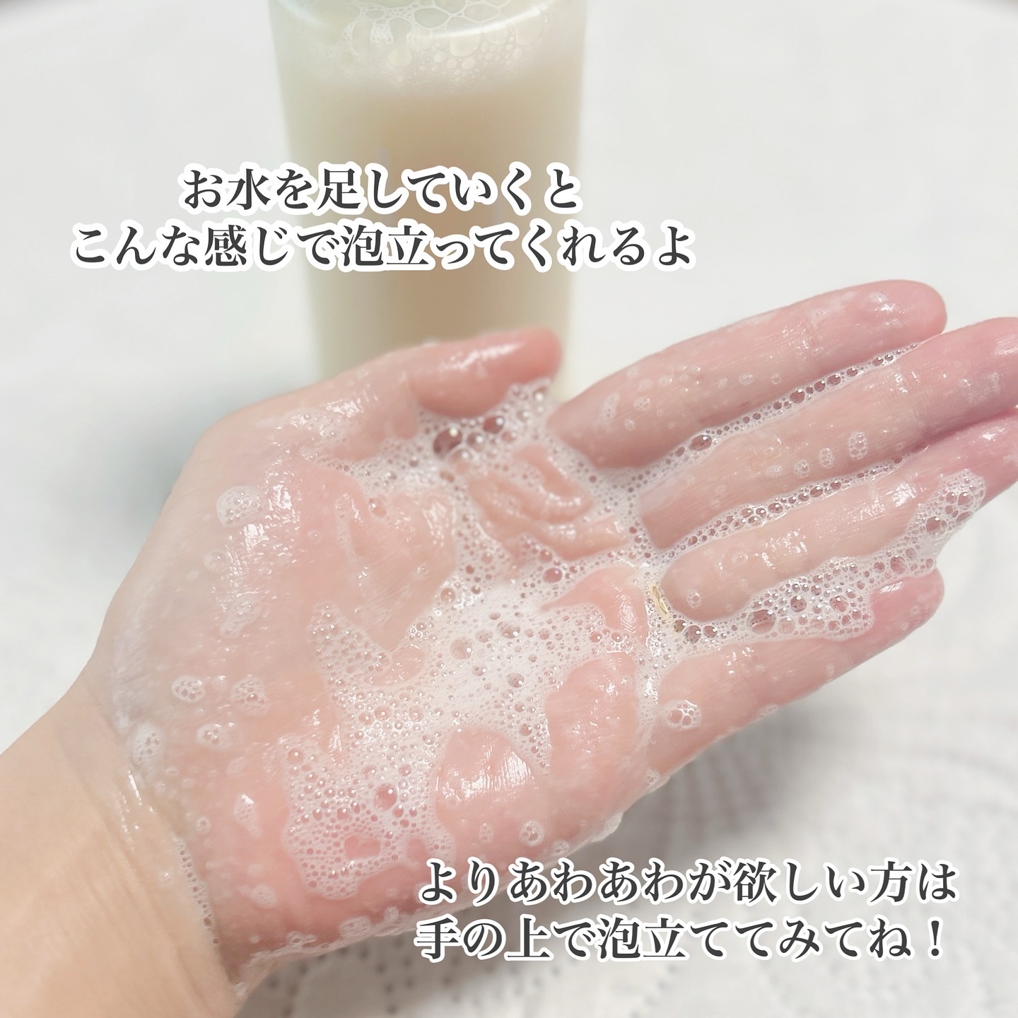 | 重たくないサラサラとしたテクスチャ!洗い上がりはしっとりしつつすべすべ✨ | 詳細を見る | ||